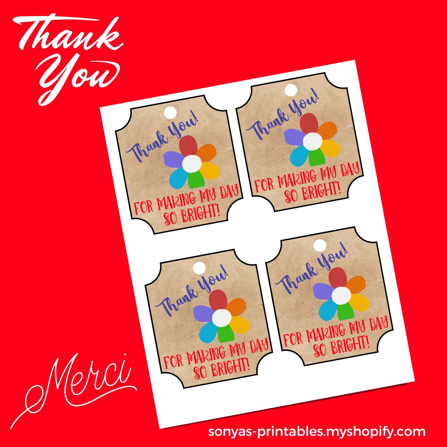 Printable Thank You Hang Tags | Rainbow Thank You Gift Tags | Thank You Rainbow Flower Hang Tags