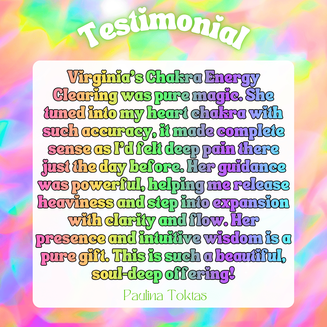 I’ll channel a personalized message around what it’s trying to say, what it’s holding, and what it’s ready to let go of. Then, I’ll move into energetic clearing that dissolves the heaviness and realigning you with clarity, flow, and truth. Then it is up to you to move onward!