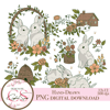 Bunny Meadow Cottage PNG Clipart | Cottagecore Rabbits Floral Art | Spring Woodland Illustration for Crafts