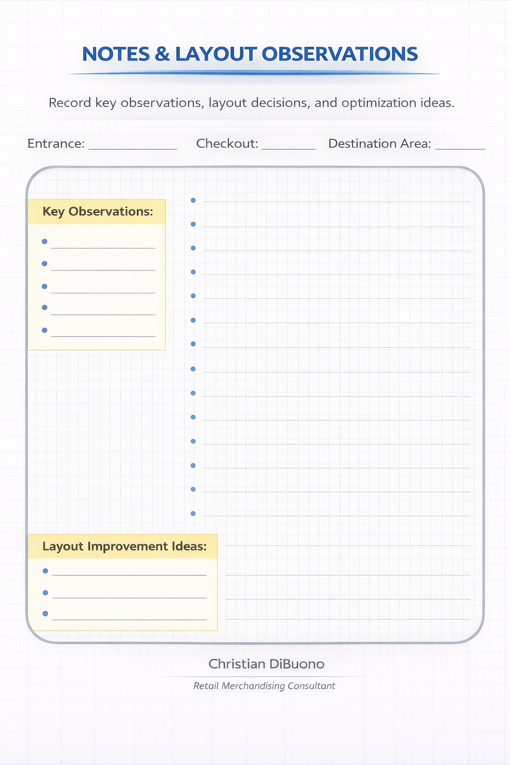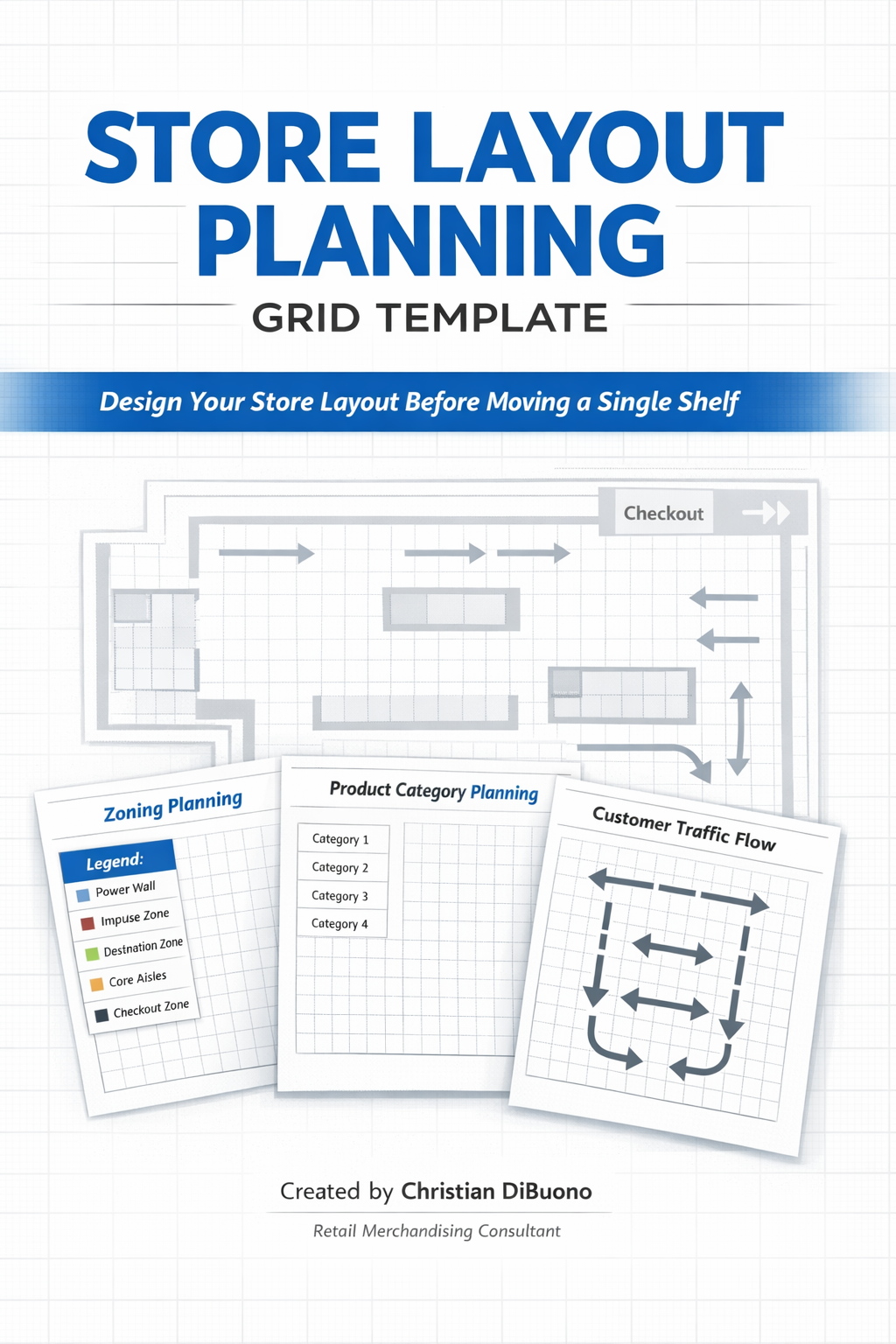 This template replicates the exact workflow used by retail merchandising consultants to design high-performing store layouts.