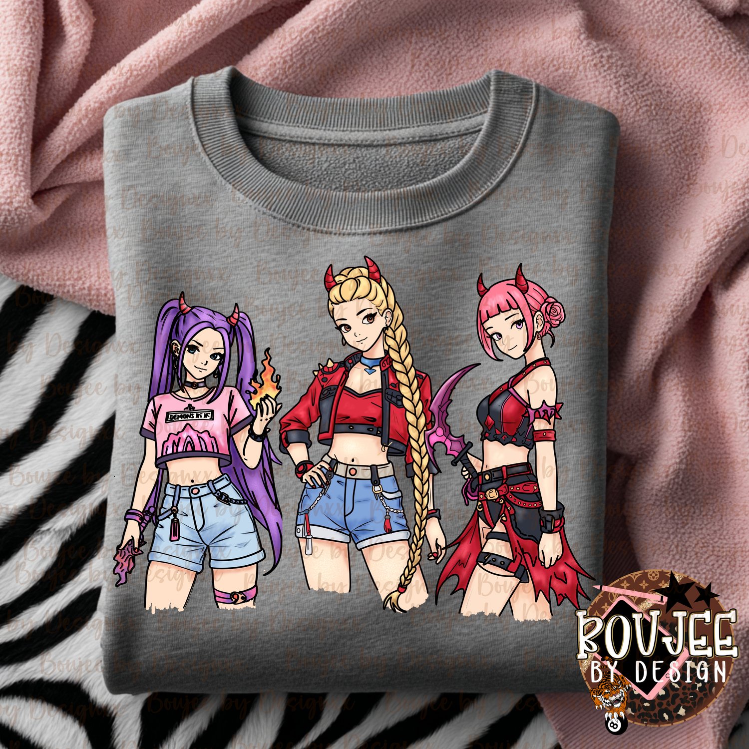 This Demon Hunter Girls PNG Bundle features hand-drawn anime-style characters perfect for tees, sweatshirts, sublimation, and more.