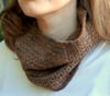This cowl has instructions for two sizes, a short cowl (21” in circumference) which fits snugly around the neck, and a longer cowl or infinity scarf (41” in circumference), which can be wrapped around the neck twice or left loose.