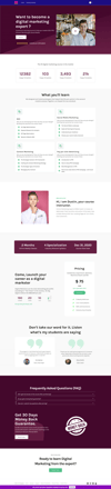 The Digital Marketing Mastery template is perfect for promoting comprehensive courses in SEO, content marketing, social media, and PPC advertising. Featuring a dynamic and modern design, this template includes key metrics to build credibility, detailed sections on what students will learn, and a personal introduction from the course instructor.