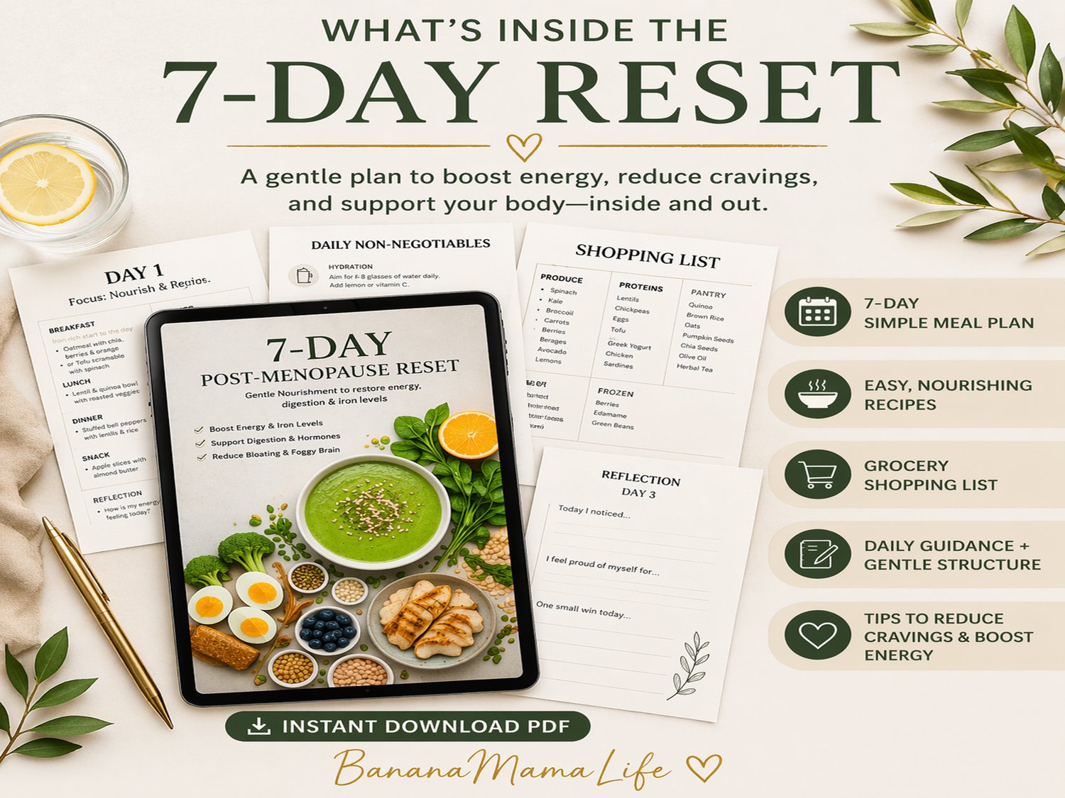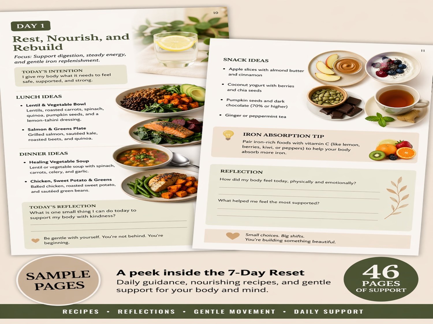 - Meal ideas + reset practices