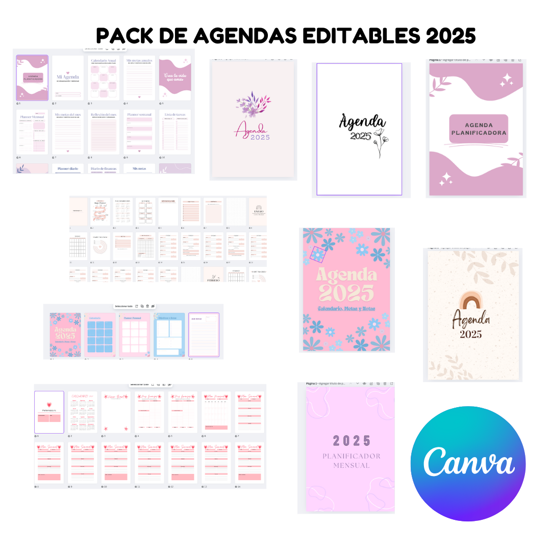PACK DE AGENDAS EDITABLES EN CANVA Y POWERPOINT, CADA MES SE ACTUALIZA EL PACK