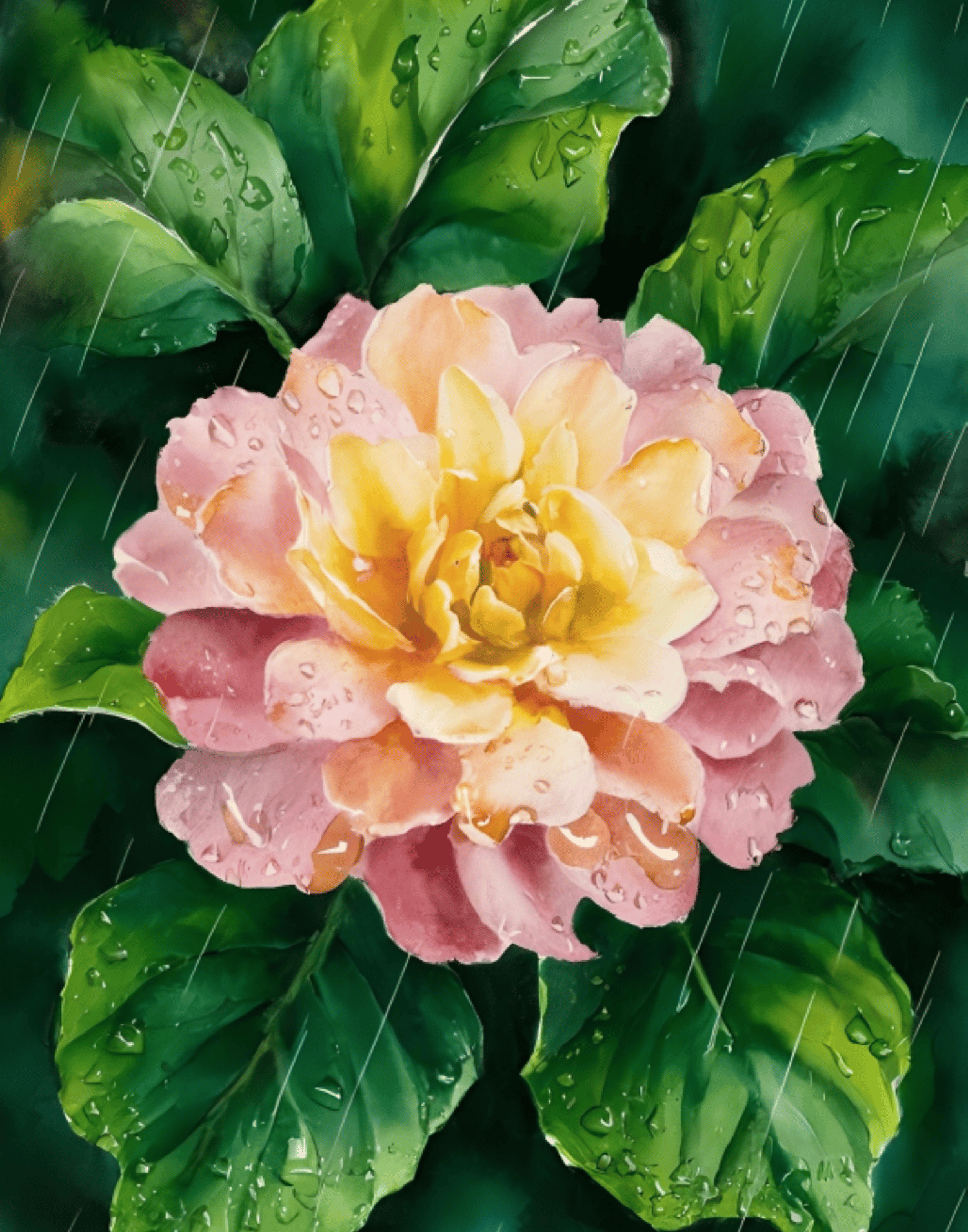 Wet Flower, Green Leaf painting, Single Flower, Rainy Season Flower, Rain Beauty, Monsoon Beauty, Wild Flower, Flower Beauty, Watercolor Floral Art, Wall Art, Digital Art, Best Flower.