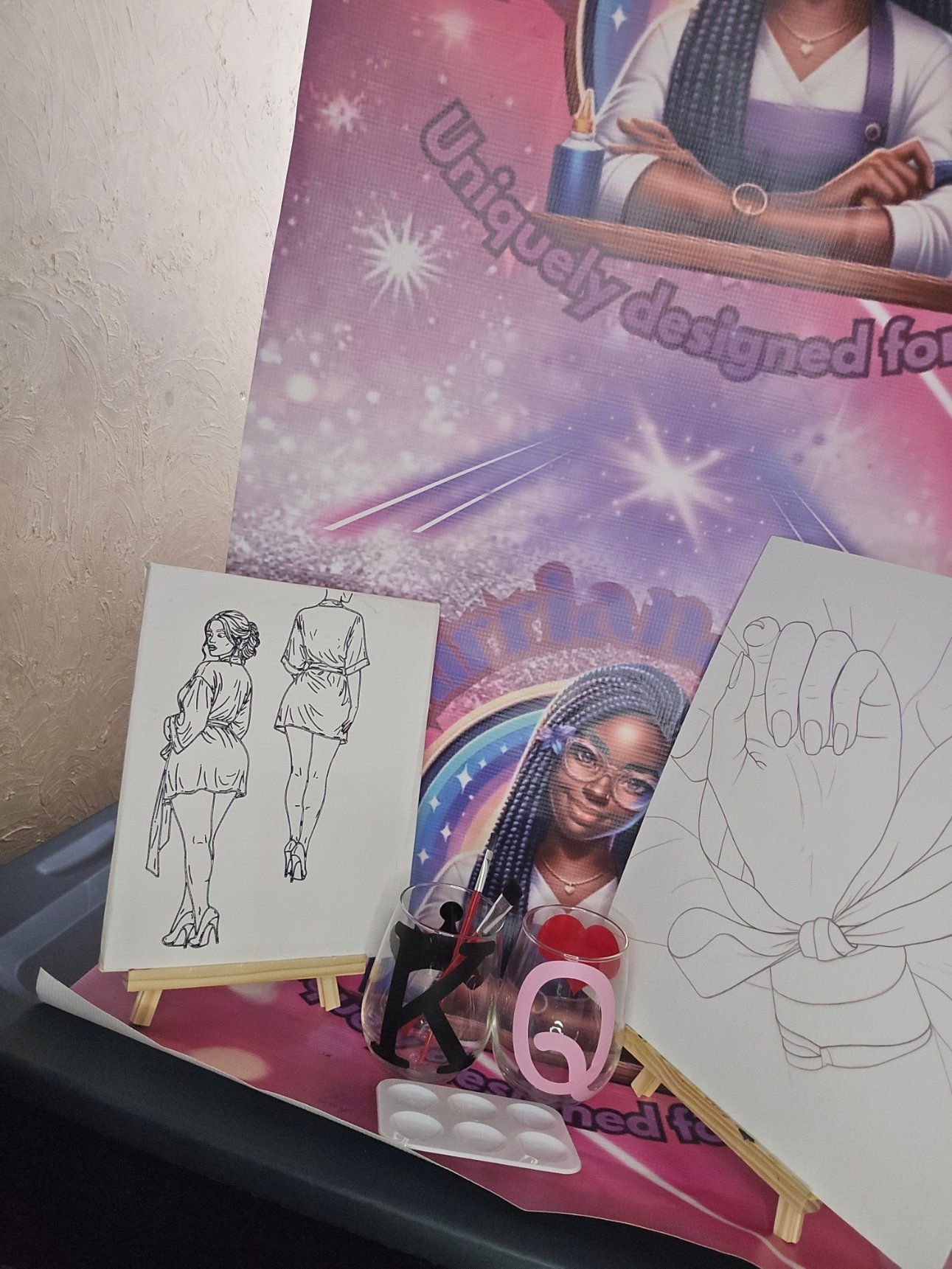 - 1 Sexy Paint & Sip Canvas Kit – Includes a seductive pre-sketched canvas, 3 paintbrushes, mixing tray, and a whole lot of attitude. (Paint not included)