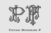 Ready to use font with dozens of monograms combining letter P with other letters... victorian vintage style