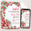 Editable Berry First Strawberry Birthday Invitation, Red Strawberry Birthday Invite, Berry Sweet Birthday Invitation Template