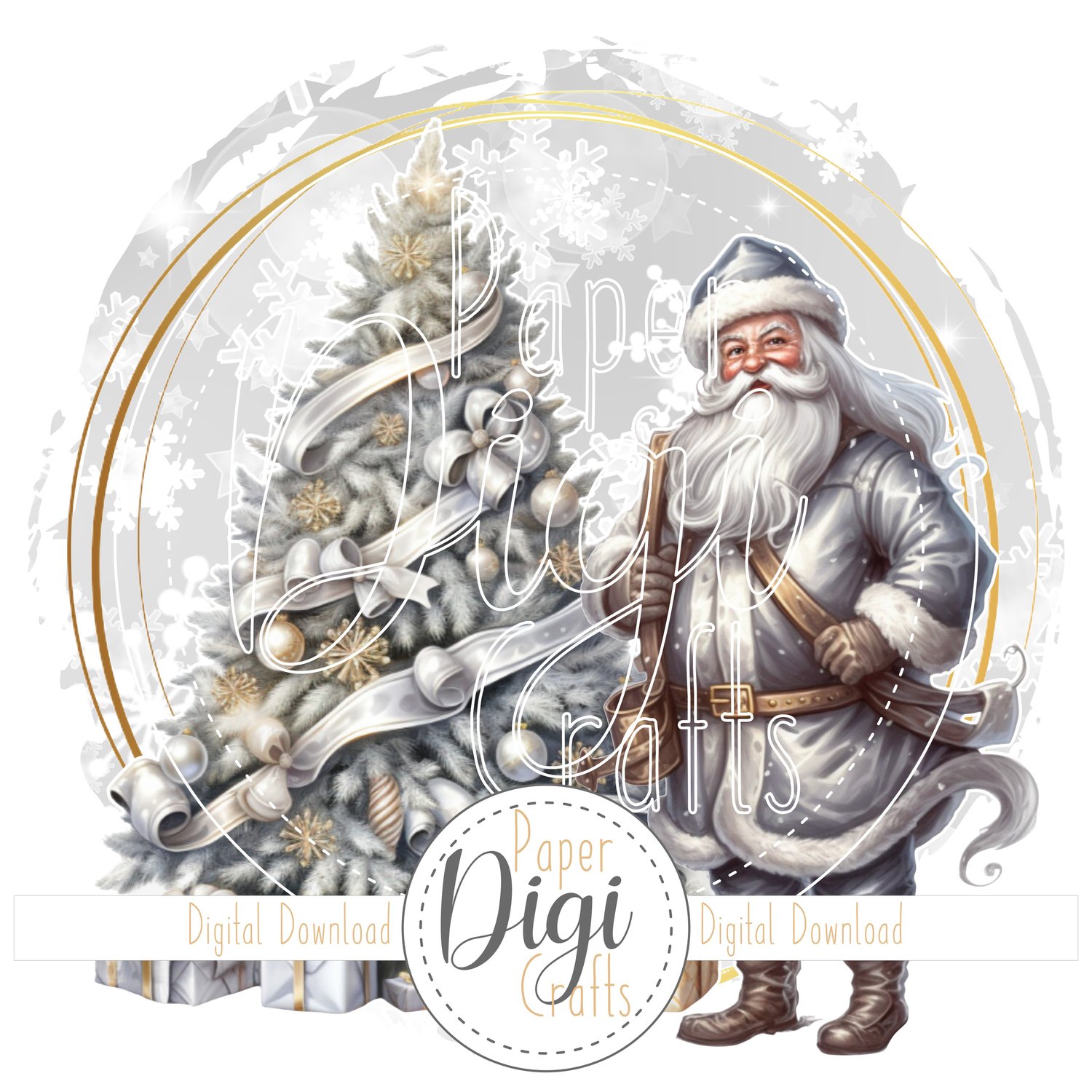 Silver Santa & Christmas Tree | Digital Download | Sublimation Image | Instant Download | Clipart