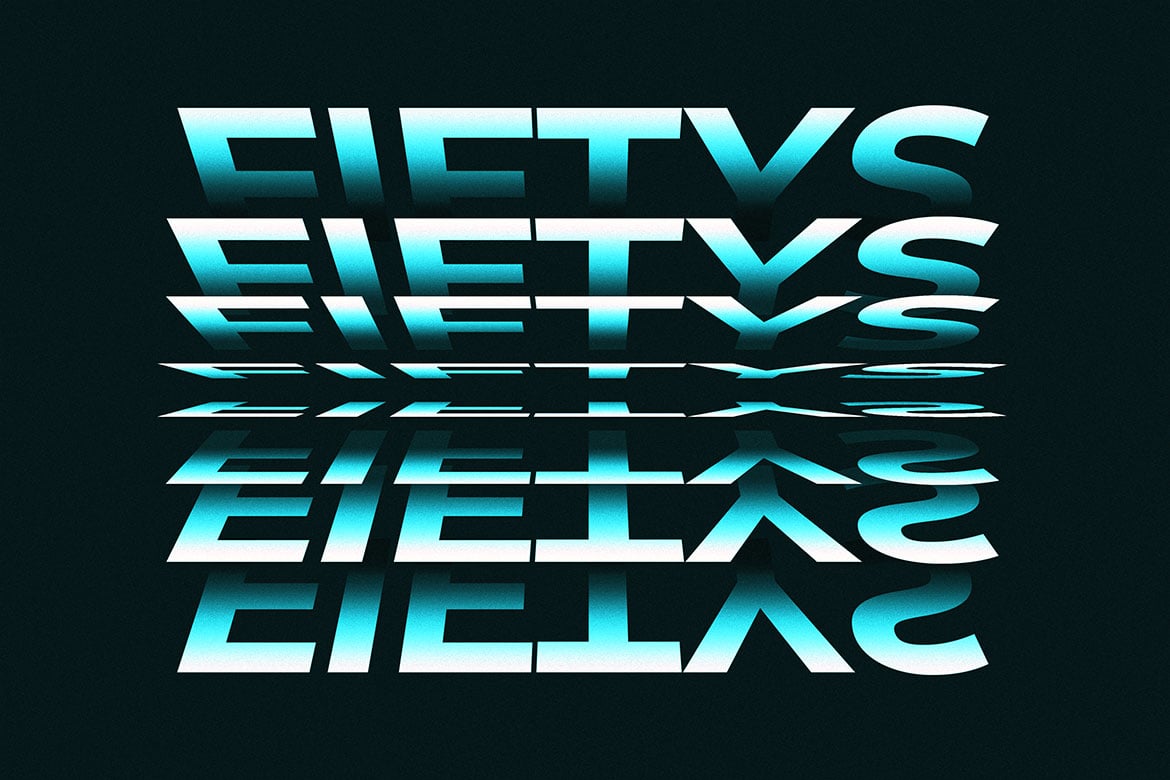 Giving the appearance of the letters being mirrored on a glossy or liquid-like surface.
