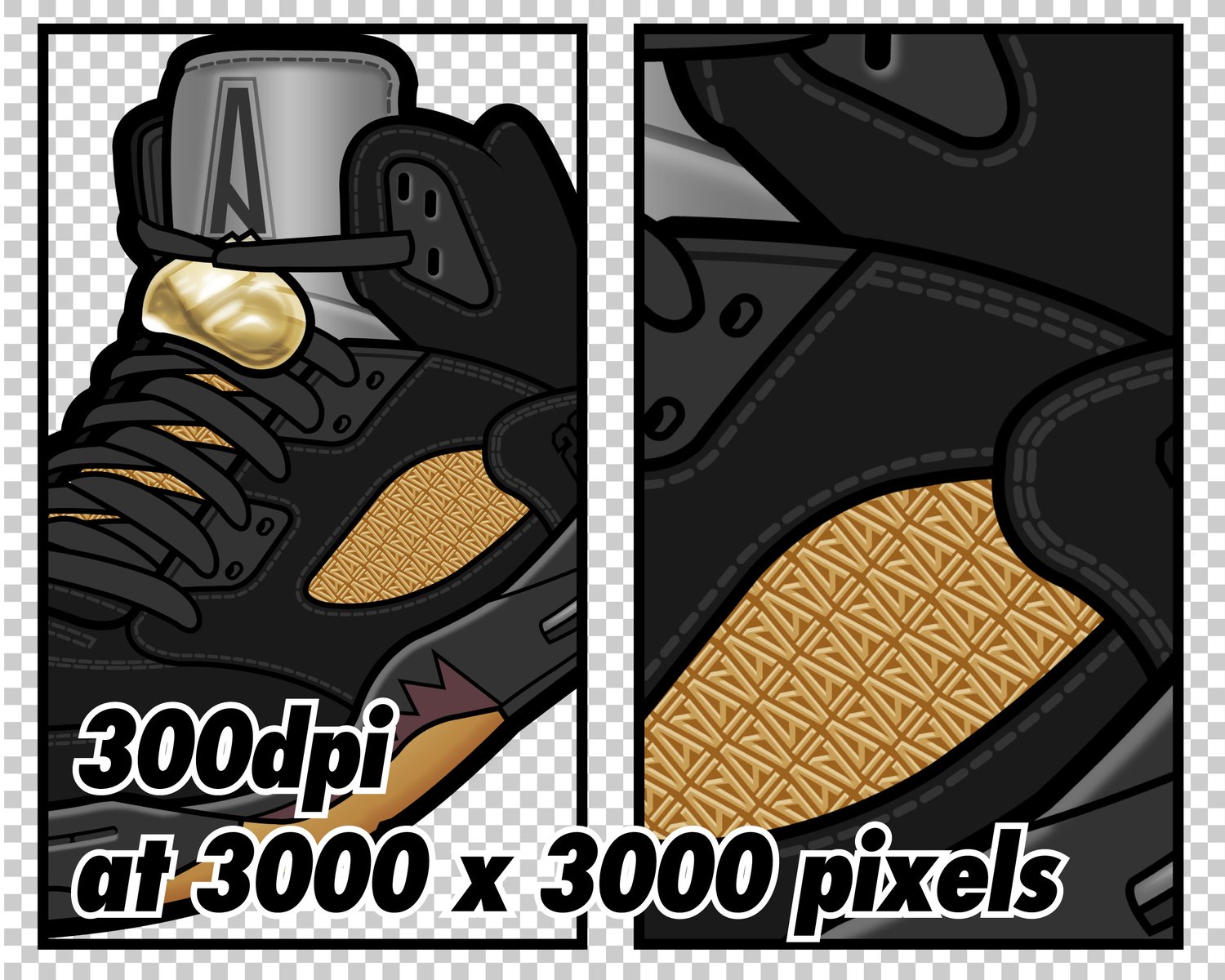 Air Jordan 5 x A Ma Maniere Black JPEG PNG right & left shoe bundle