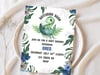 Celebrate your little one with this fun and editable “Hatching Soon” Dinosaur Baby Shower Invitation! Featuring a cute baby dino popping out of lush jungle leaves, this baby boy invitation is perfect for a dino-themed shower that’s both adorable and on-trend.