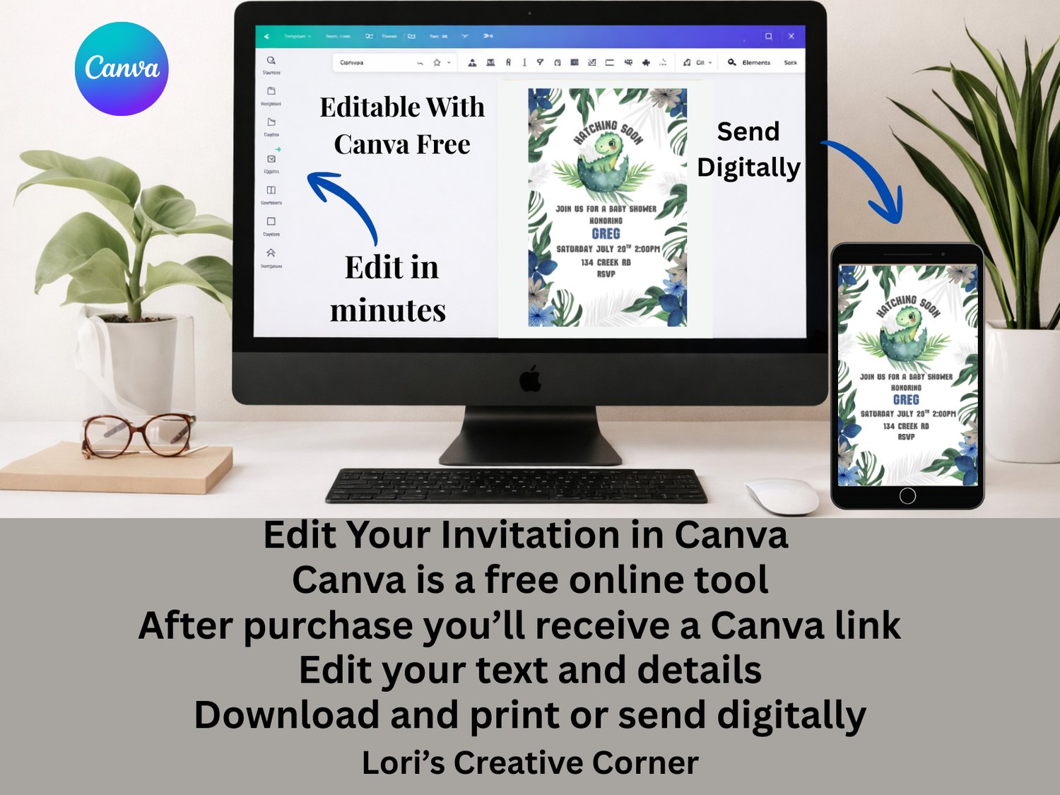 • 1 Editable 5x7" Baby Shower Invitation (via Canva link)