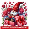 Each illustration has vibrant colors, playful gnome characters, and romantic details like flowers, hearts, and balloons, making them ideal for celebrating the season of love. Whether you're creating personalized gifts, festive party decorations, or charming DIY projects, these versatile gnomes will bring your designs to life.