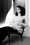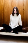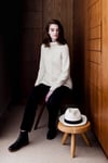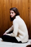 Raglan, body, and sleeve seams are sewn using mattress stitch, then collar is folded to the inside and tacked in place.