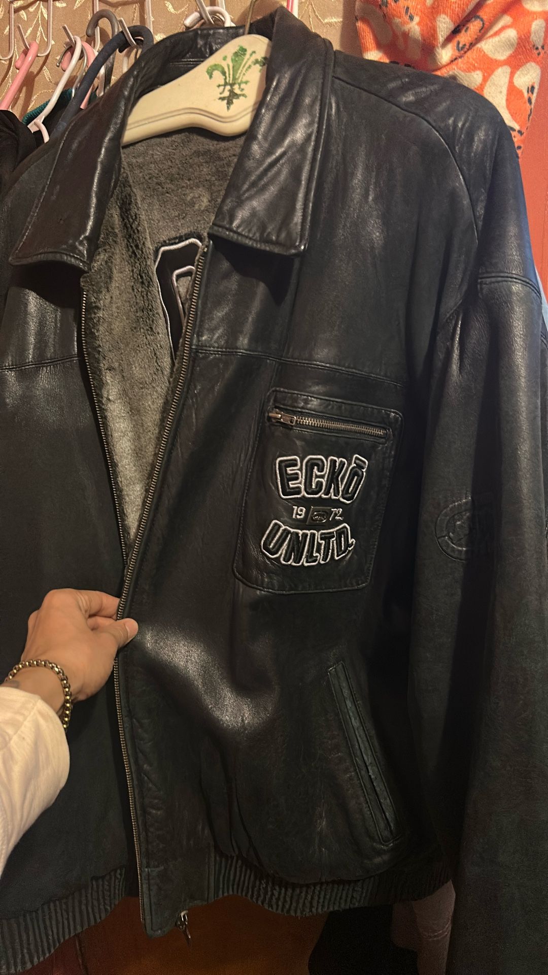 Echo Unlimited Reversible Leather Jacket – $200 Check it out—this official Echo Unlimited jacket is a top-notch winter leather, built for warmth and durability. Crafted from genuine leather, it features a reversible design with a luxurious gray mink interior for cold-weather comfort. The thick, heavy pockets and branded logo detailing speak to its quality and authenticity. Slightly worn, but still a premium, hard-to-find piece—available now for $200