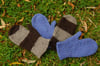 Note that the instructions provided are for a basic, plain stockinette mitten. For details of how I worked the blue sample with the detail stitch or placed the stripes on the brown-and-grey pair you can refer to the notes on my project pages. Detailed notes to help with varying the design to your own taste are also provided in the pattern.