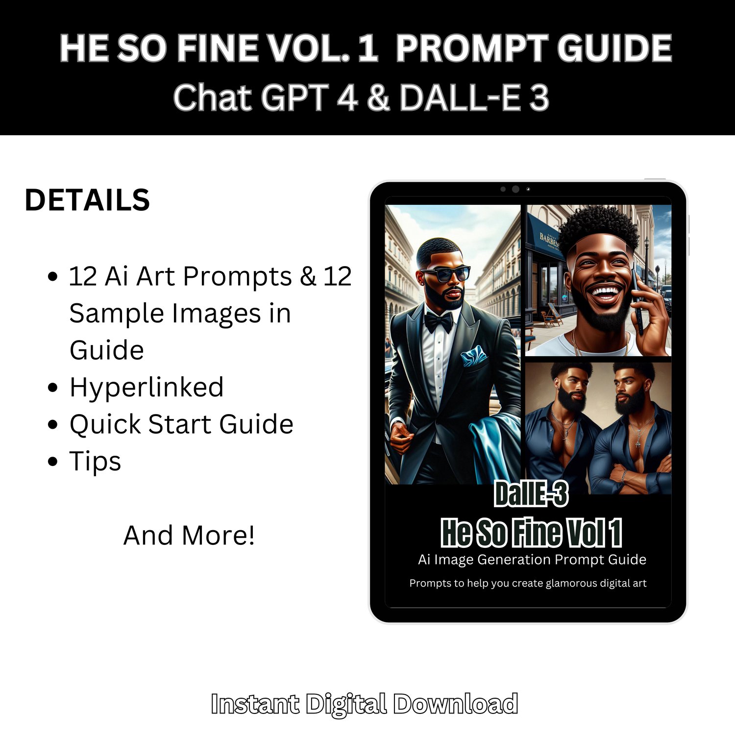 Ai Art Prompt Guide | Handsome Black Men | GPT prompts | Create Stunning Digital Images for Commercial Use with Chat GPT 4 DALL E 3 | Luxe