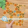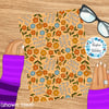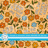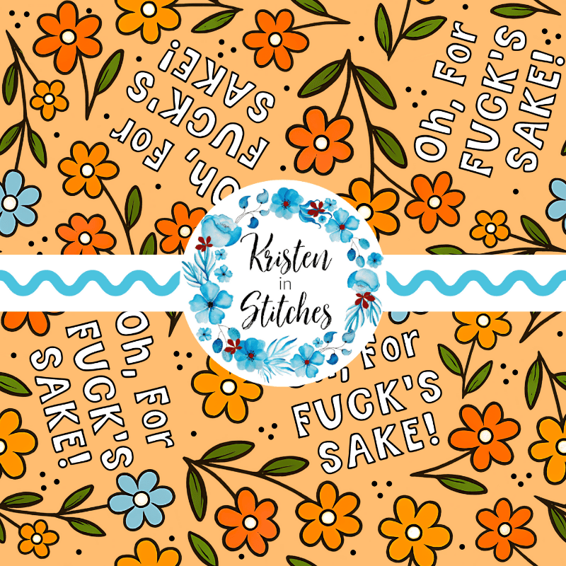 Oh, For Fuck's Sake! floral pattern with orange, yellow and blue daisy flowers.