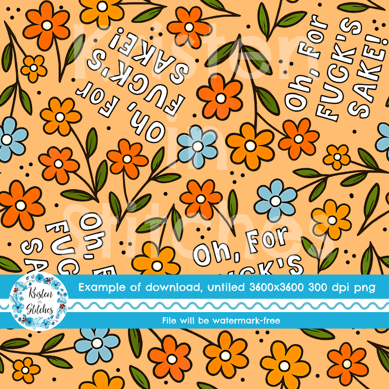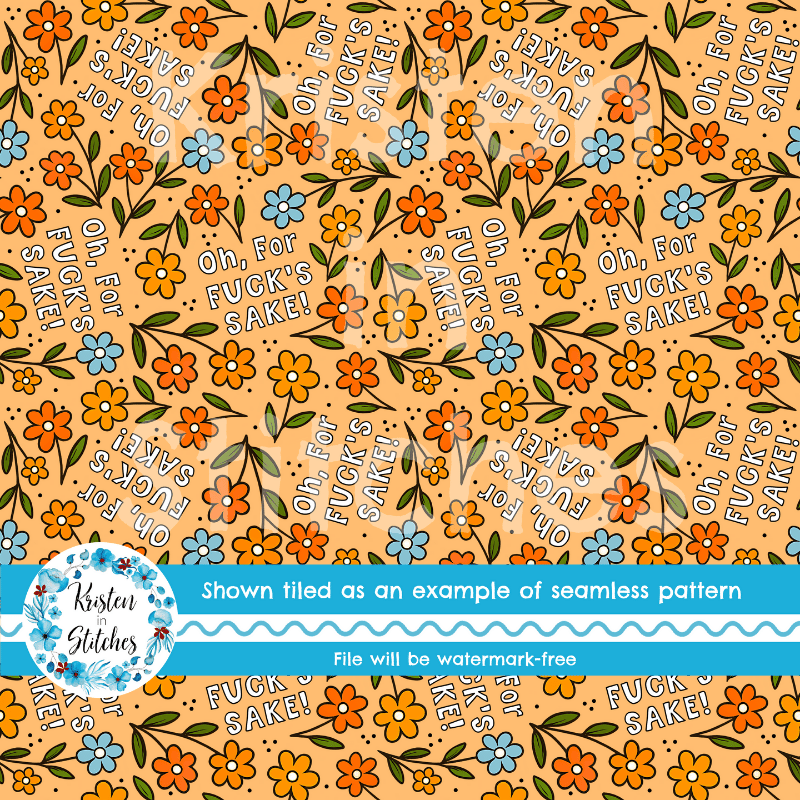 Oh For Fuck's Sake Swear Word Seamless Pattern, Pretty Profanities, Daisy Flowers
