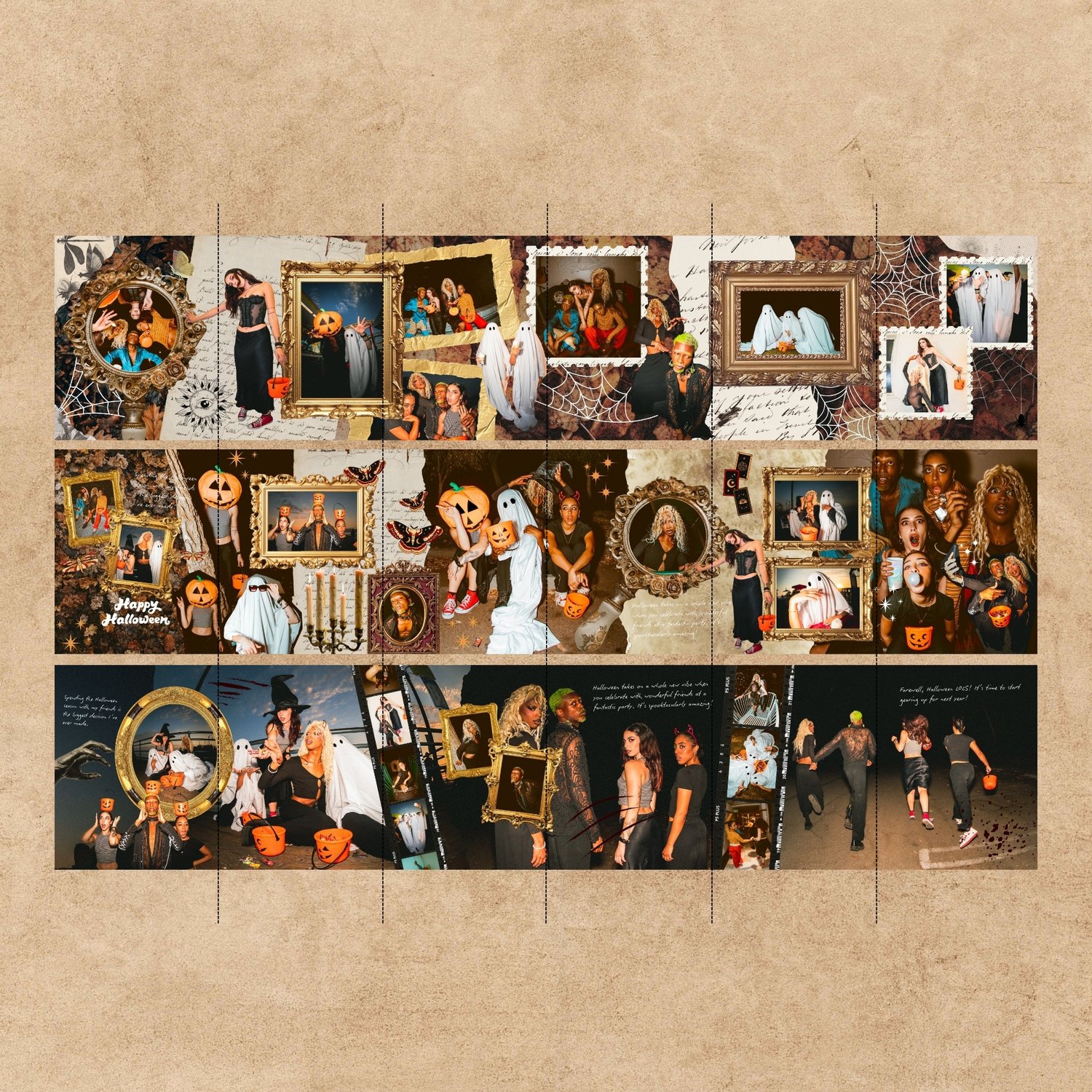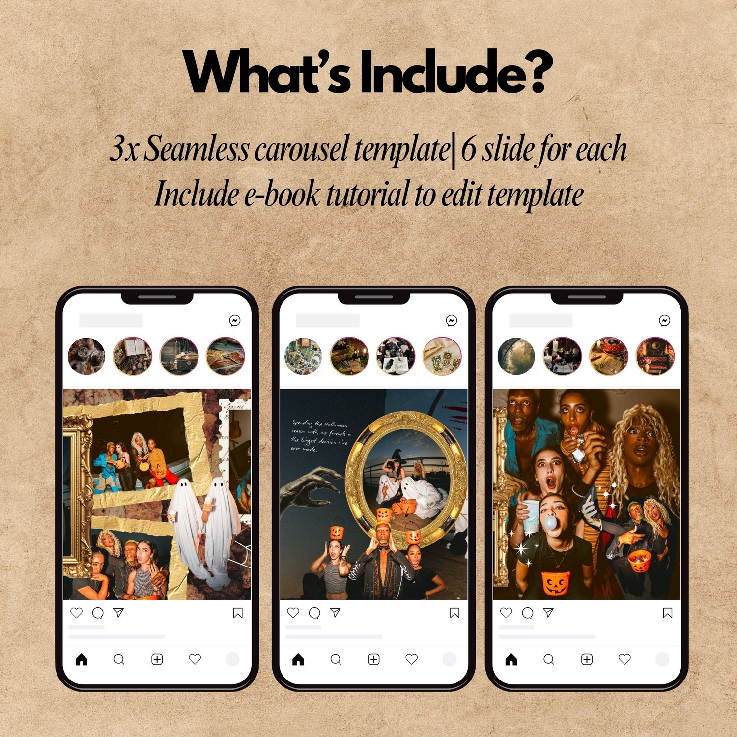 Spice up your spooky season content with this dark and vintage-inspired Halloween Carousel Template — perfect for social media managers, content creators, or business owners who want to post eye-catching, seasonal content with a seamless look.