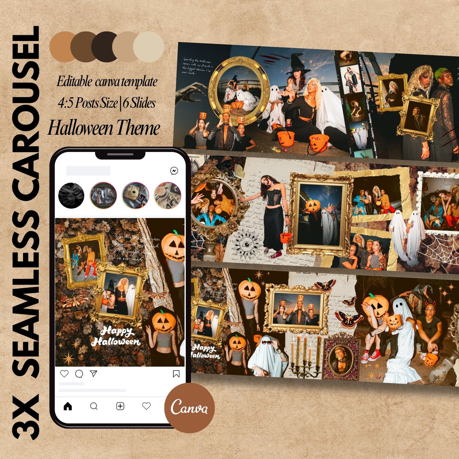 3 Seamless Instagram Carousel | Halloween Vintage Canva Template