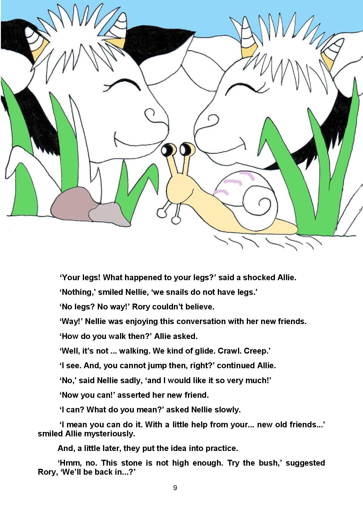 - the story part is about 10 pages long with the illustrations in the upper part and the text in the lower half;