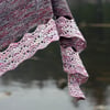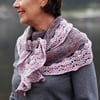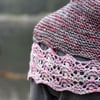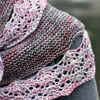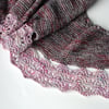 Magpies are known for collecting shiny objects, and even though this pattern is named for the yarn I used in the sample, the finished object is a shiny object worth collecting for your wardrobe. It’s fairly simple to knit, with garter stitch rows and simple increases making a wearable crescent shape. Buttonhole lace attaches the softly-scalloped spring lace border.