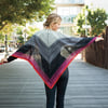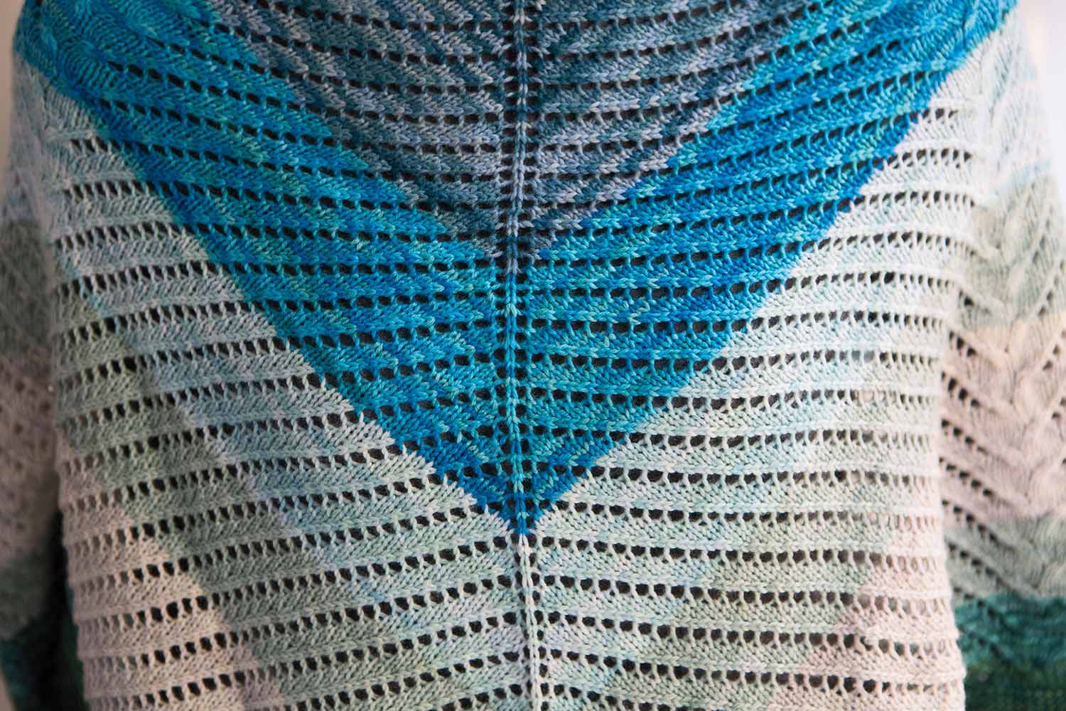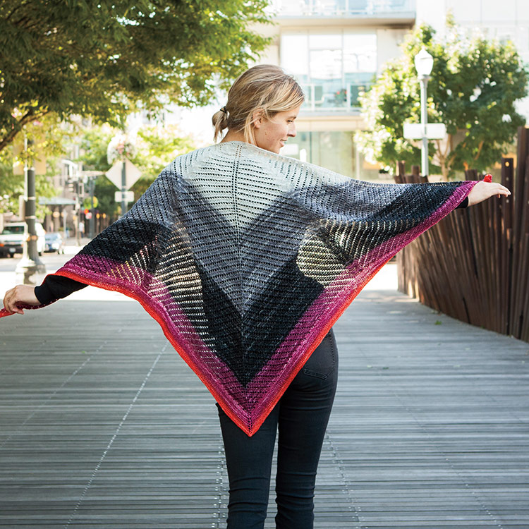 The Gradience Shawl is a classic triangular shape knit from the top down, starting with a garter tab using a Turkish Cast On.