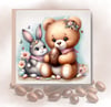 Bears with Easter Bunny. 2 files; pink and blue - watercolour, with watercolour background; flower and butterfly embellishments