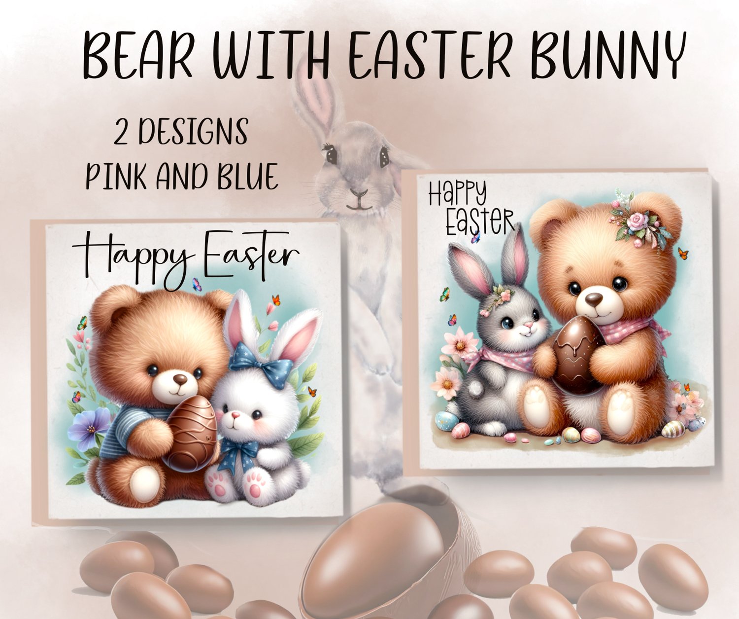 Bears with Easter Bunny. 2 files; pink and blue