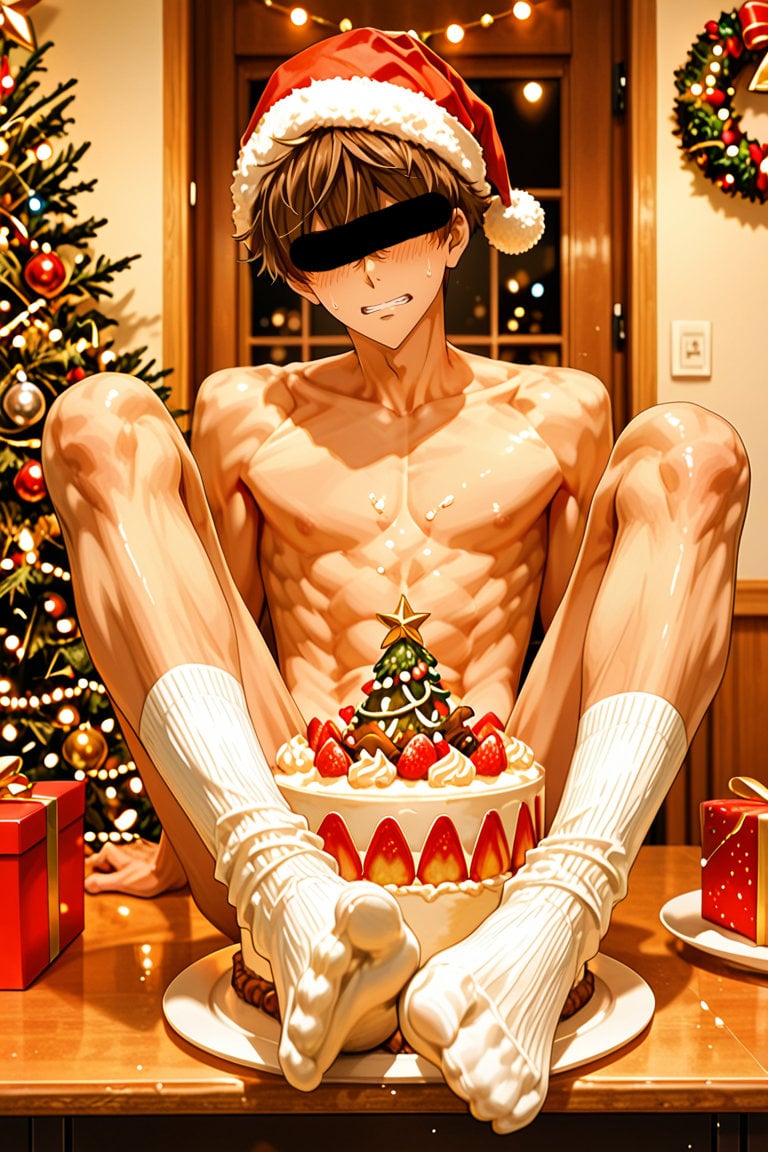 クリスマスをテーマに、サンタやトナカイコスプレをしている男性を、キャラクターごとにお任せ作成しました。男らしいキャラクターの魅力を思い切って表現しました。