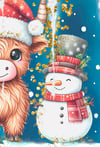 Christmas brushstroke paint stroke design. Highland Cow, snowman, Santas, reindeer, 1 PNG digital files