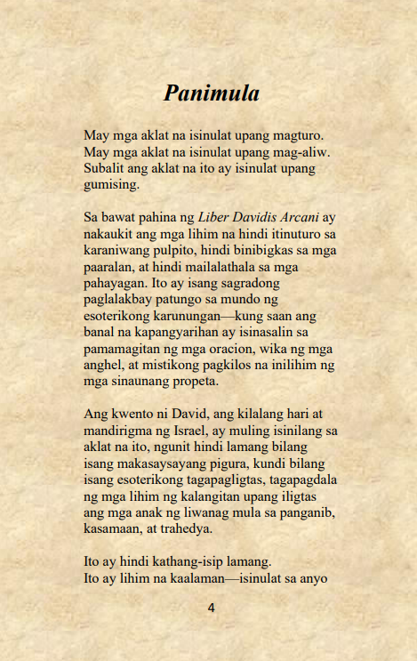 Liber Davidis Arcani ay hindi lamang isang nobela—ito ay banal na kasangkapan para sa mga espiritwal na mandirigma, mga tagapangalaga ng sinaunang kaalaman, at sa mga nagnanais lumakad sa landas ng karunungan at kapangyarihan.