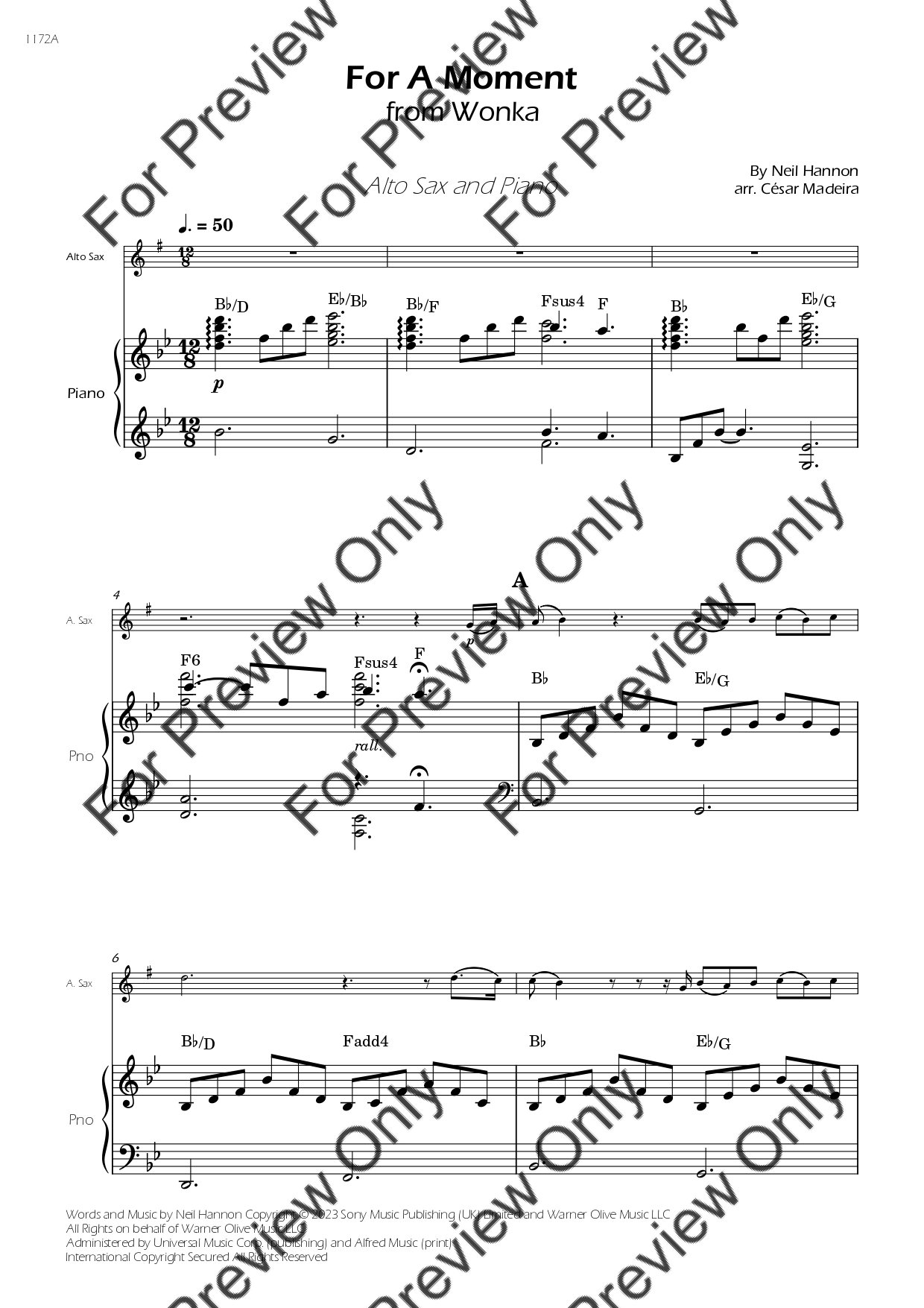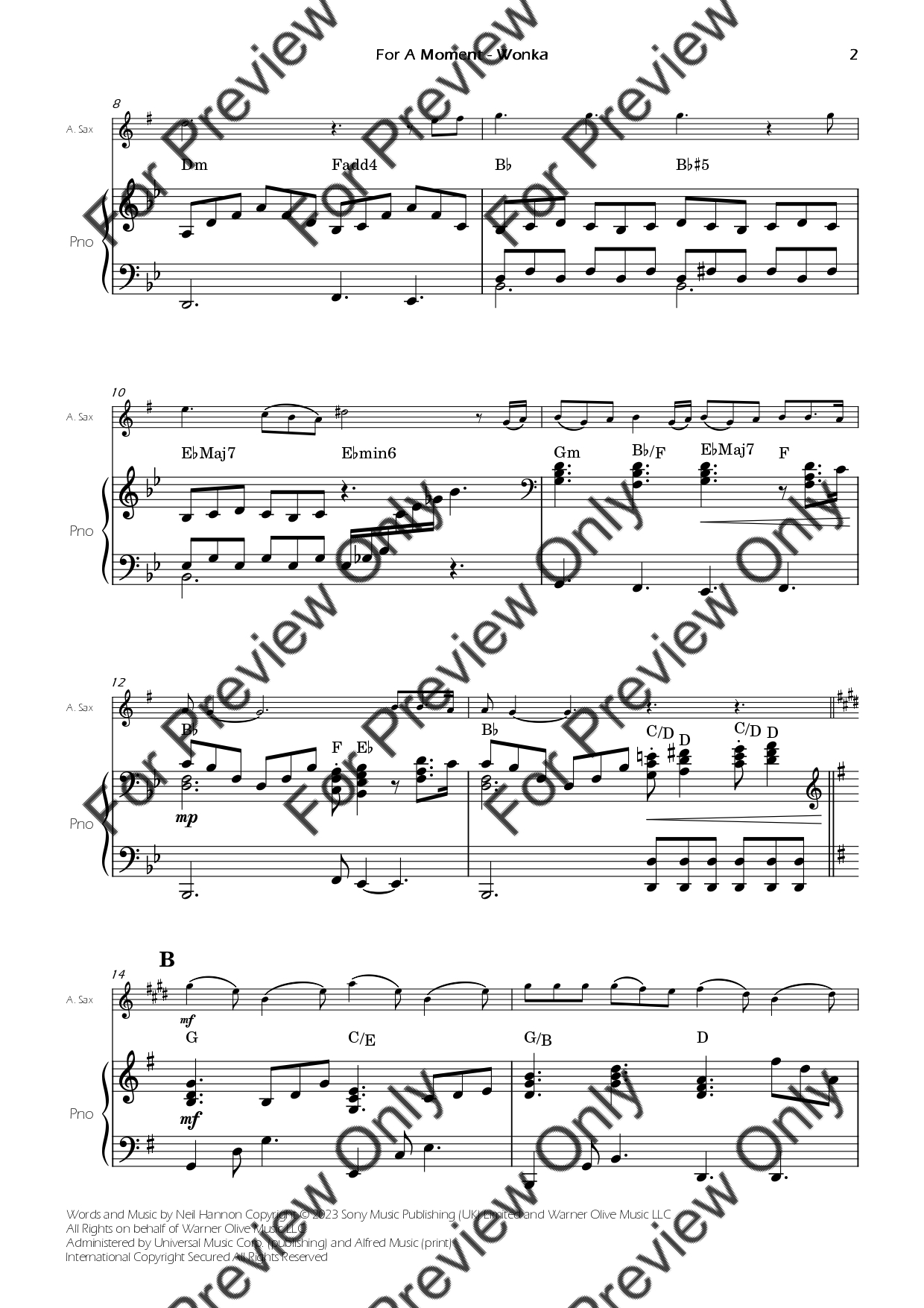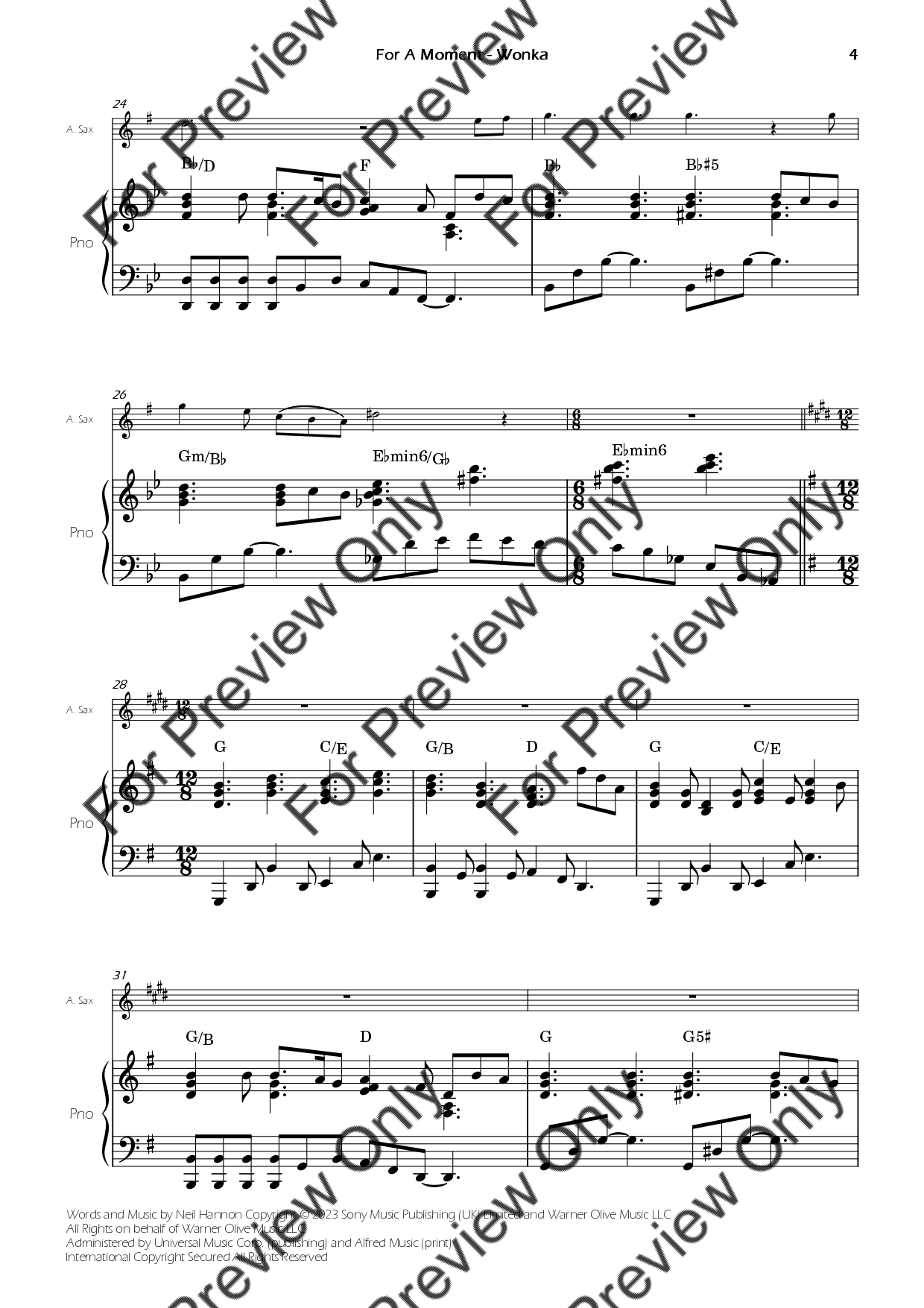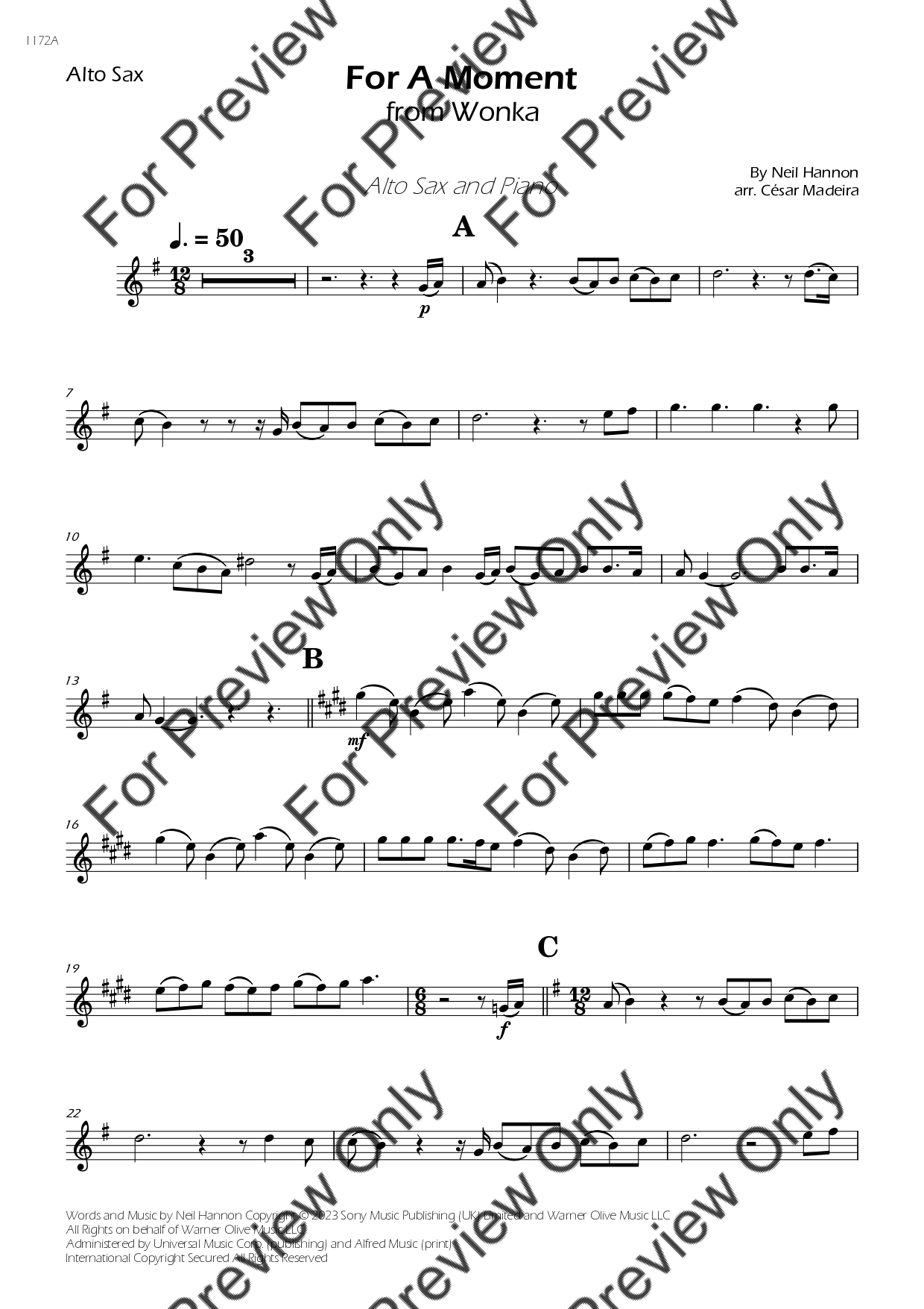 For A Moment from Wonka. Arrangement for Alto Saxophone and Piano. With Full Score and Individual Parts. Have fun!