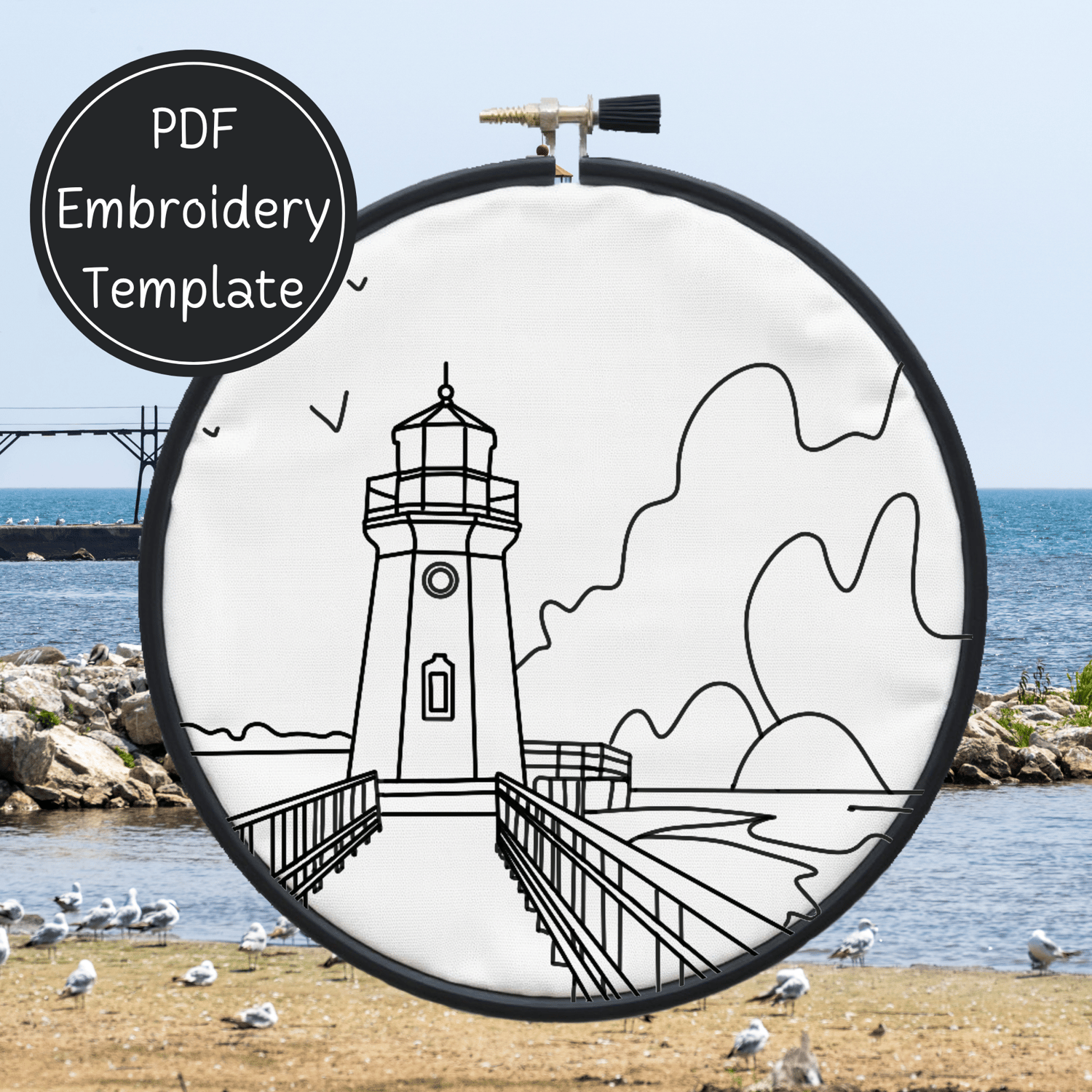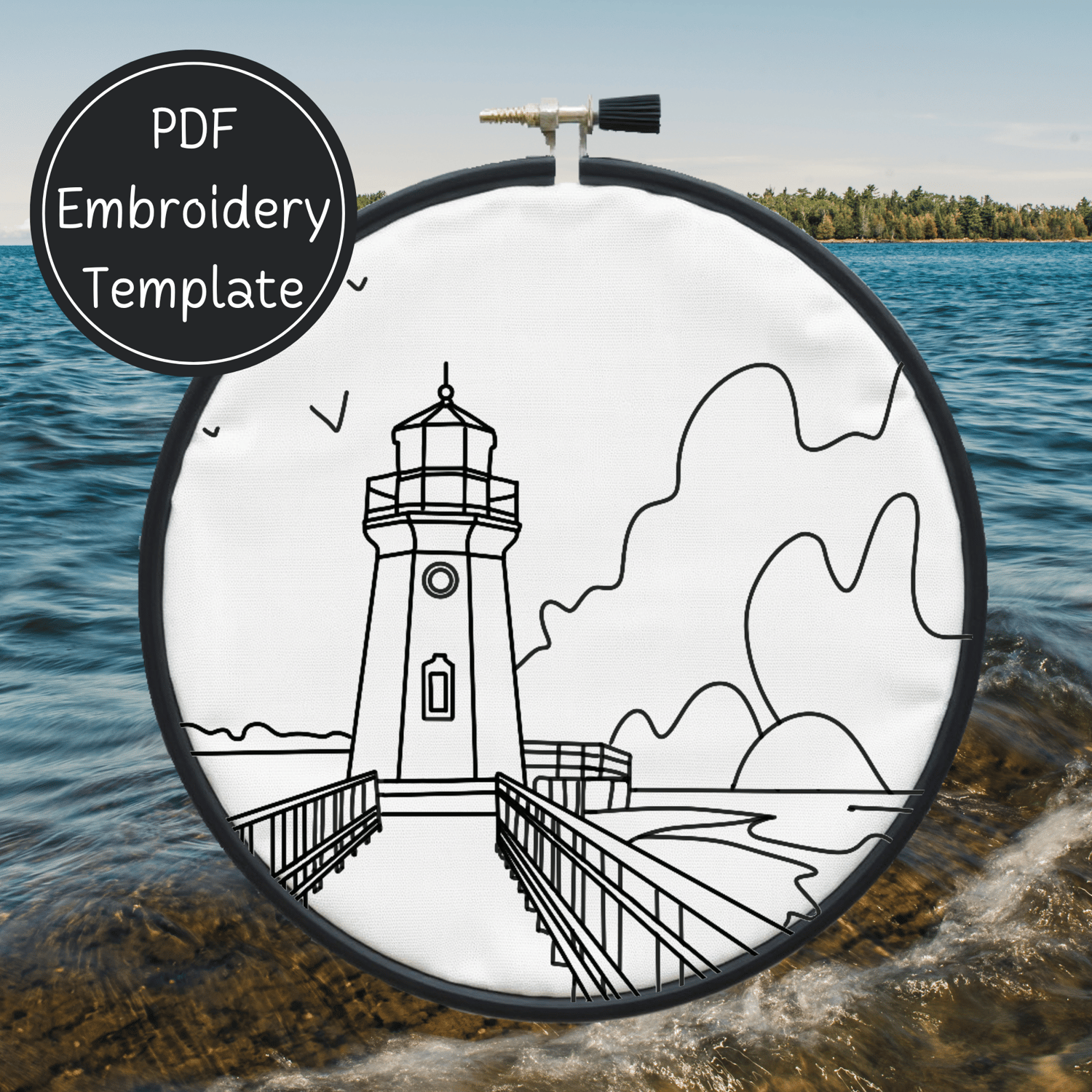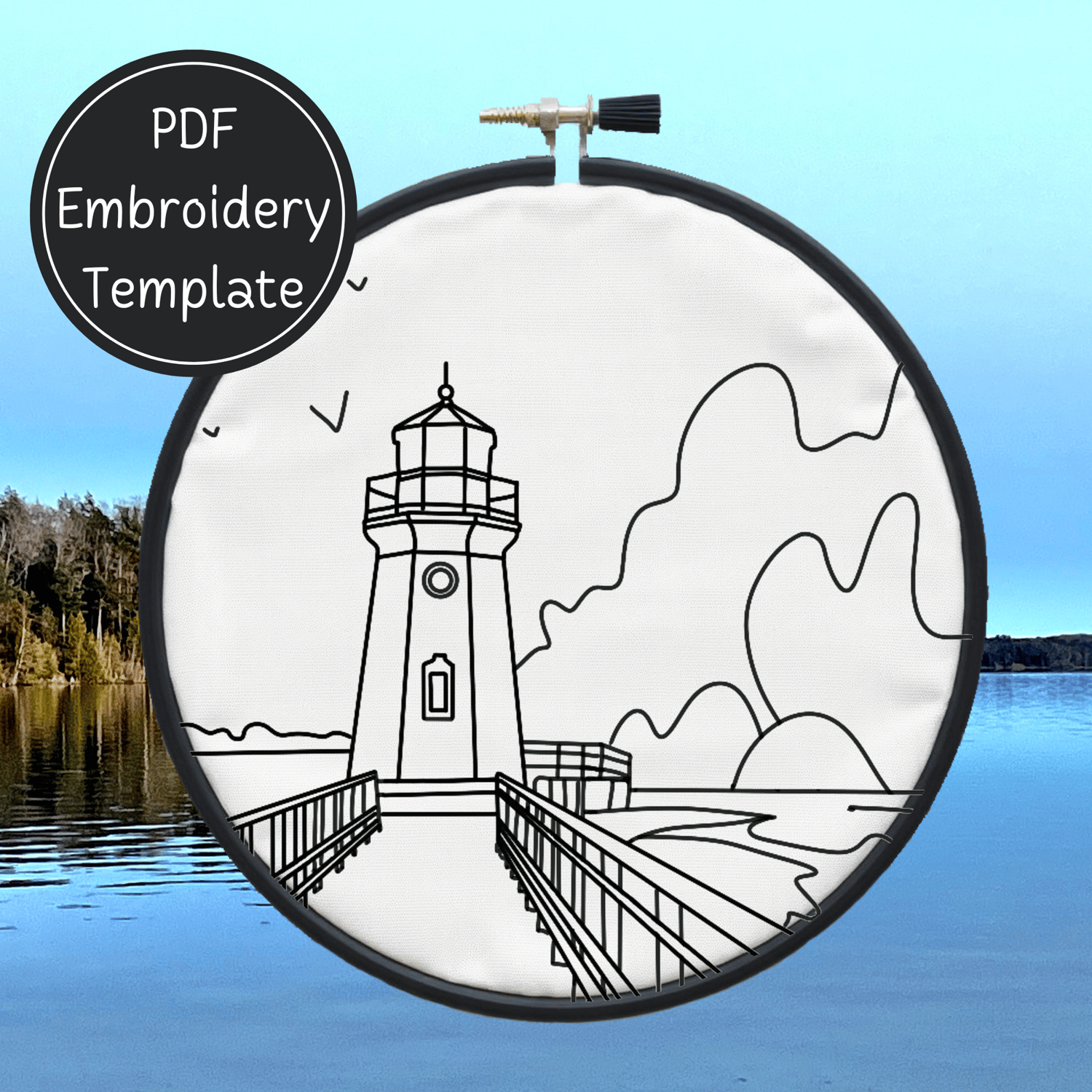 Cheboygan Crib Lighthouse Embroidery Template PDF - DIY Lighthouse Design For Hand Stitching - Instant Download