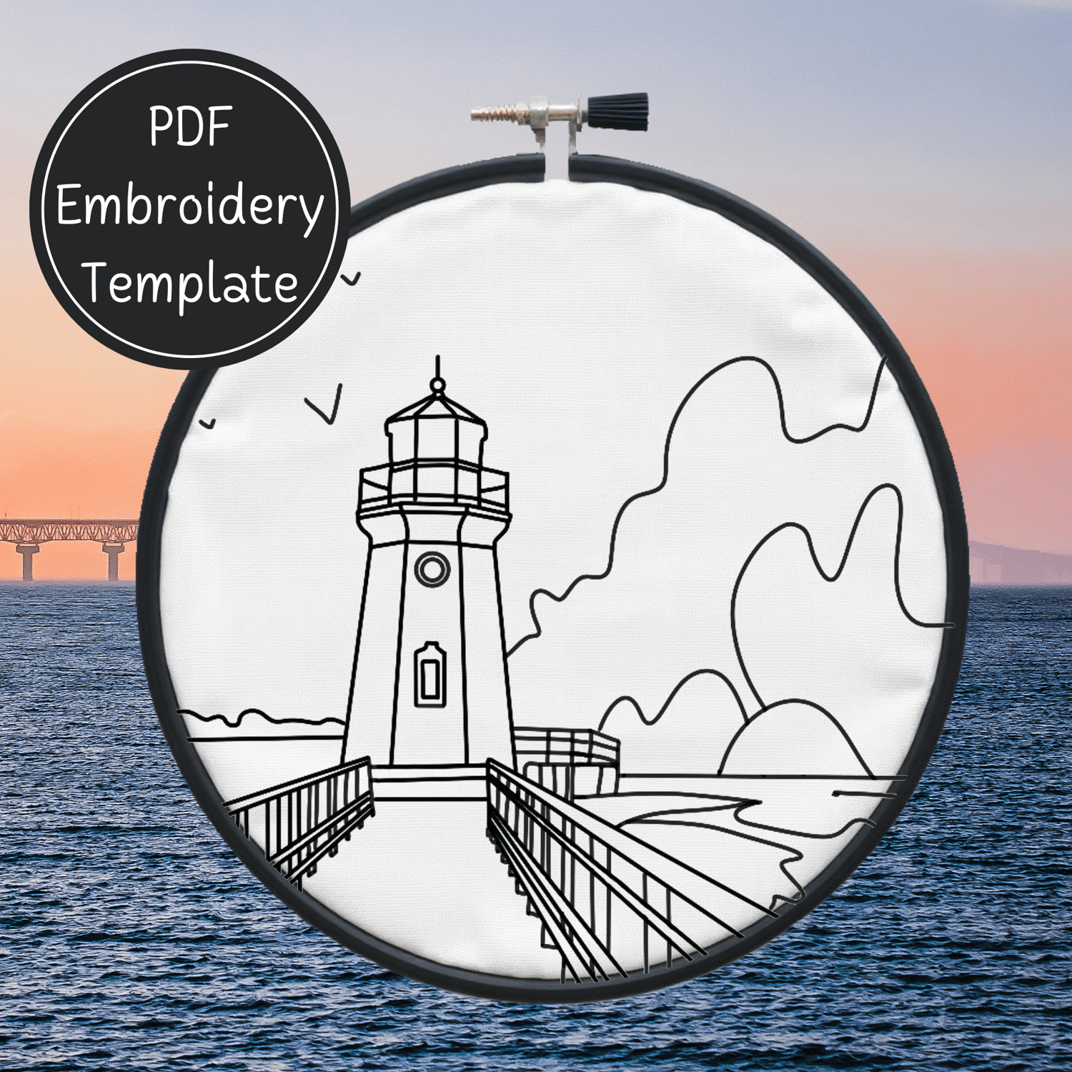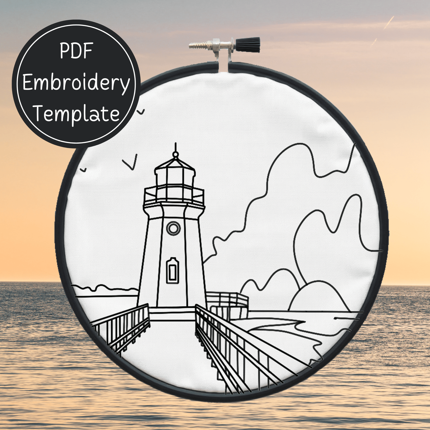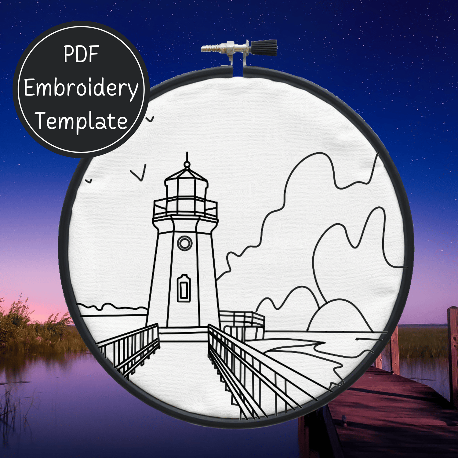 Cheboygan Crib Lighthouse Embroidery Template PDF - DIY Lighthouse Design For Hand Stitching - Instant Download