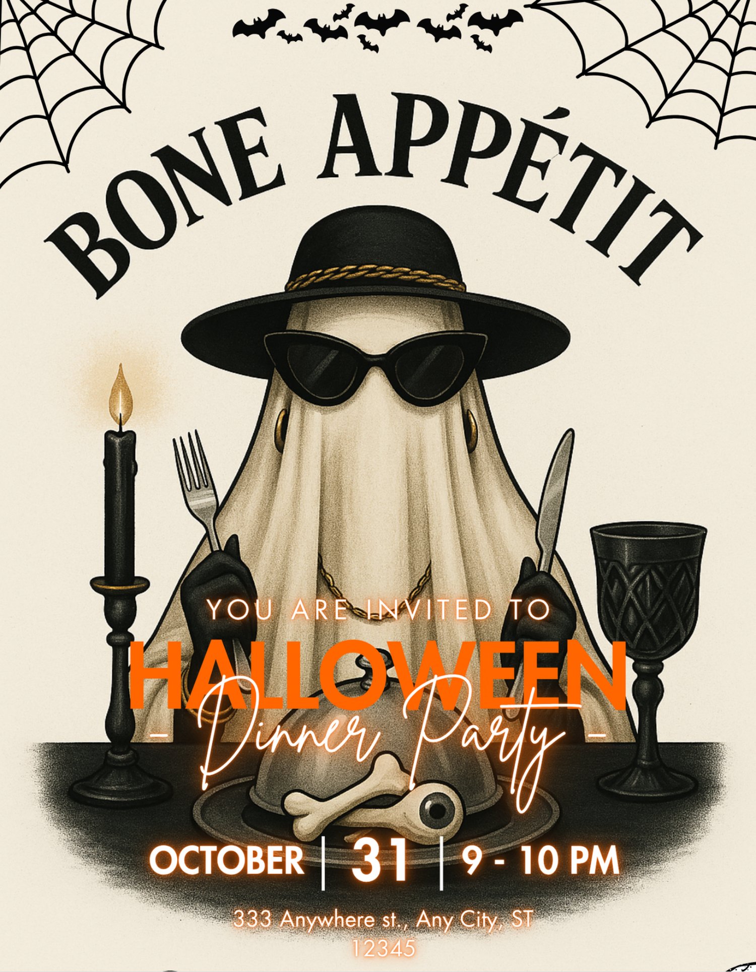 đ Freebie Sublimation PNG â âBone AppĂ©titâ Luxe Ghost Dinner Party Design (High-Quality Halloween Art)
