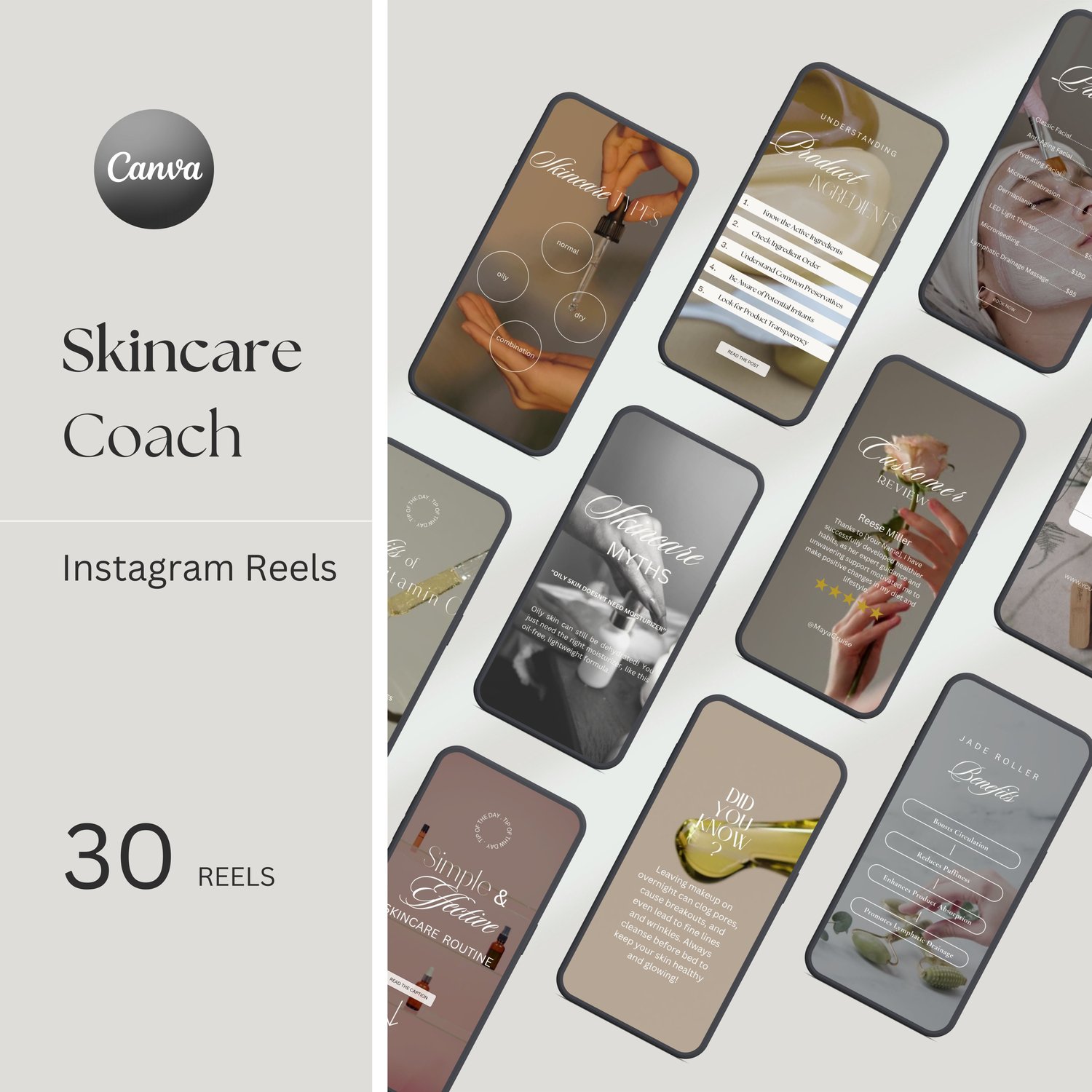 Skincare Social Media Content Reels | Esthetician Luxury Template