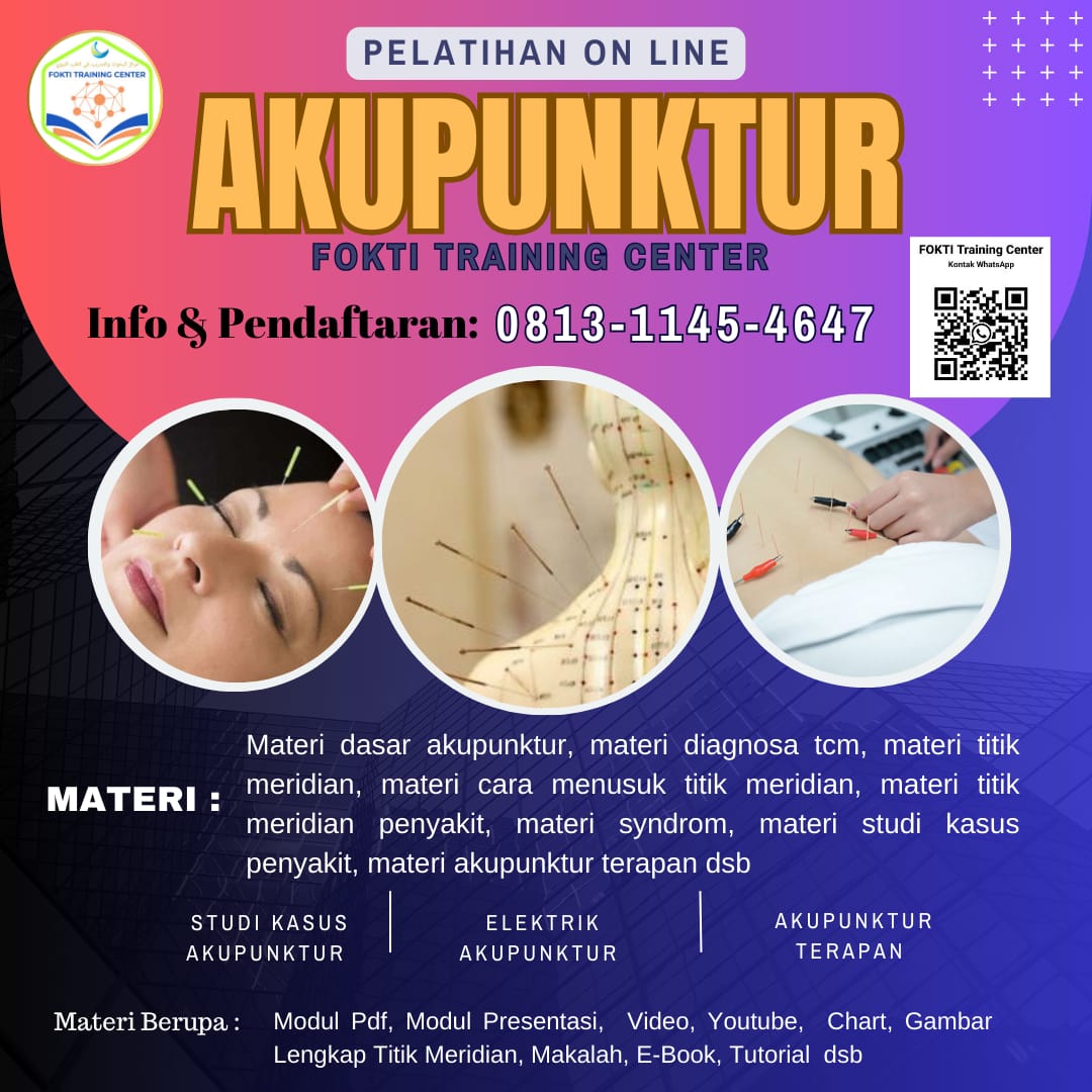 Materi dasar akupunktur, materi diagnosa tcm, materi titik meridian, materi cara menusuk titik meridian, materi titik meridian penyakit, materi syndrom, materi studi kasus penyakit, materi akupunktur terapan dsb