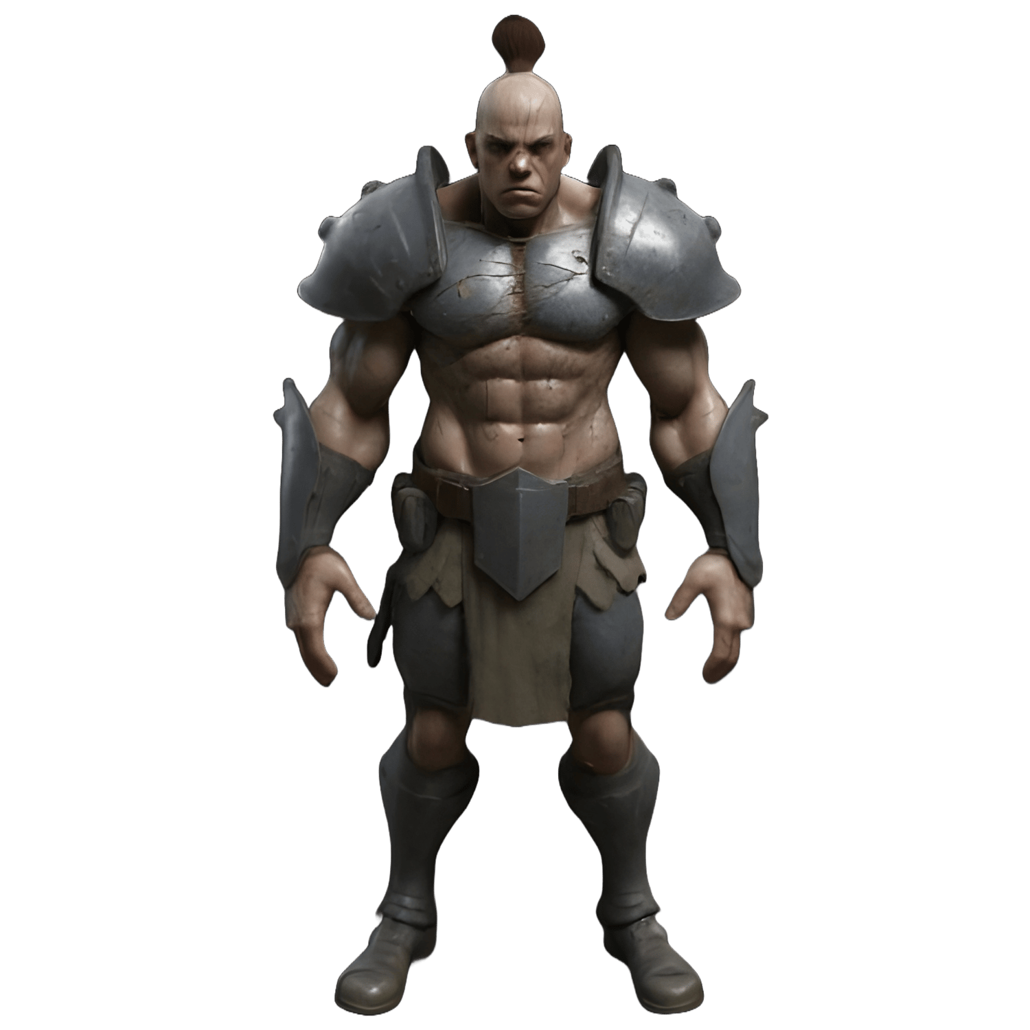 A battle-ready warrior with armored shoulders and a muscular physique, ready for epic fantasy battles.