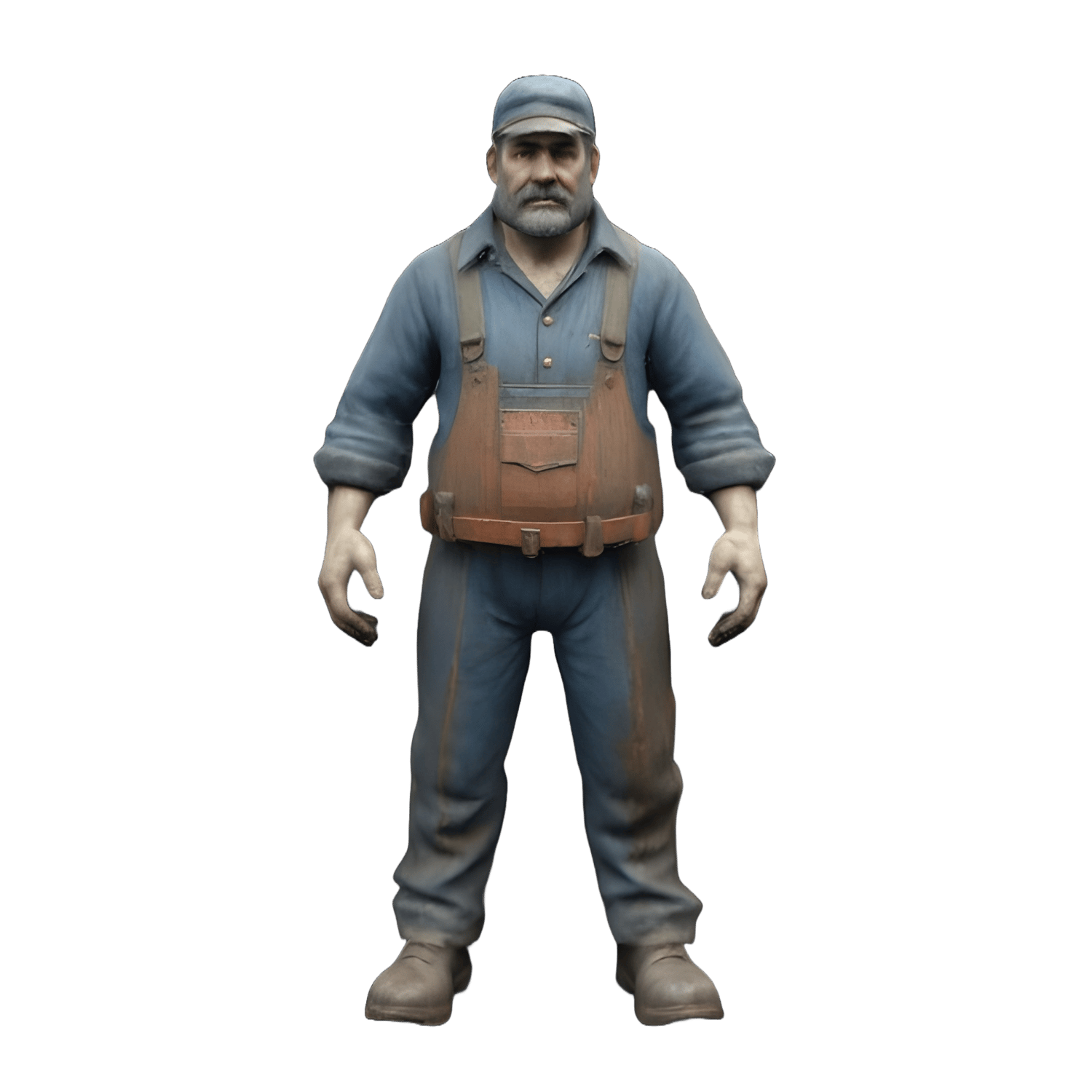 A realistic worker in overalls and a cap, great for modern dioramas, construction scenes, or collectible figurines.