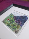 The actual piece measures aprox 11 x 11cm and the framed size is 25cm x 25cm