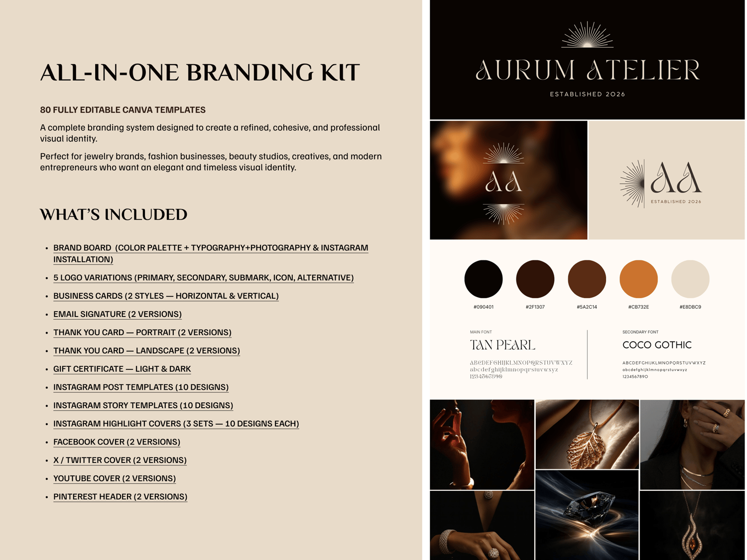 Luxury Jewelry Branding Kit – Editable Canva Templates