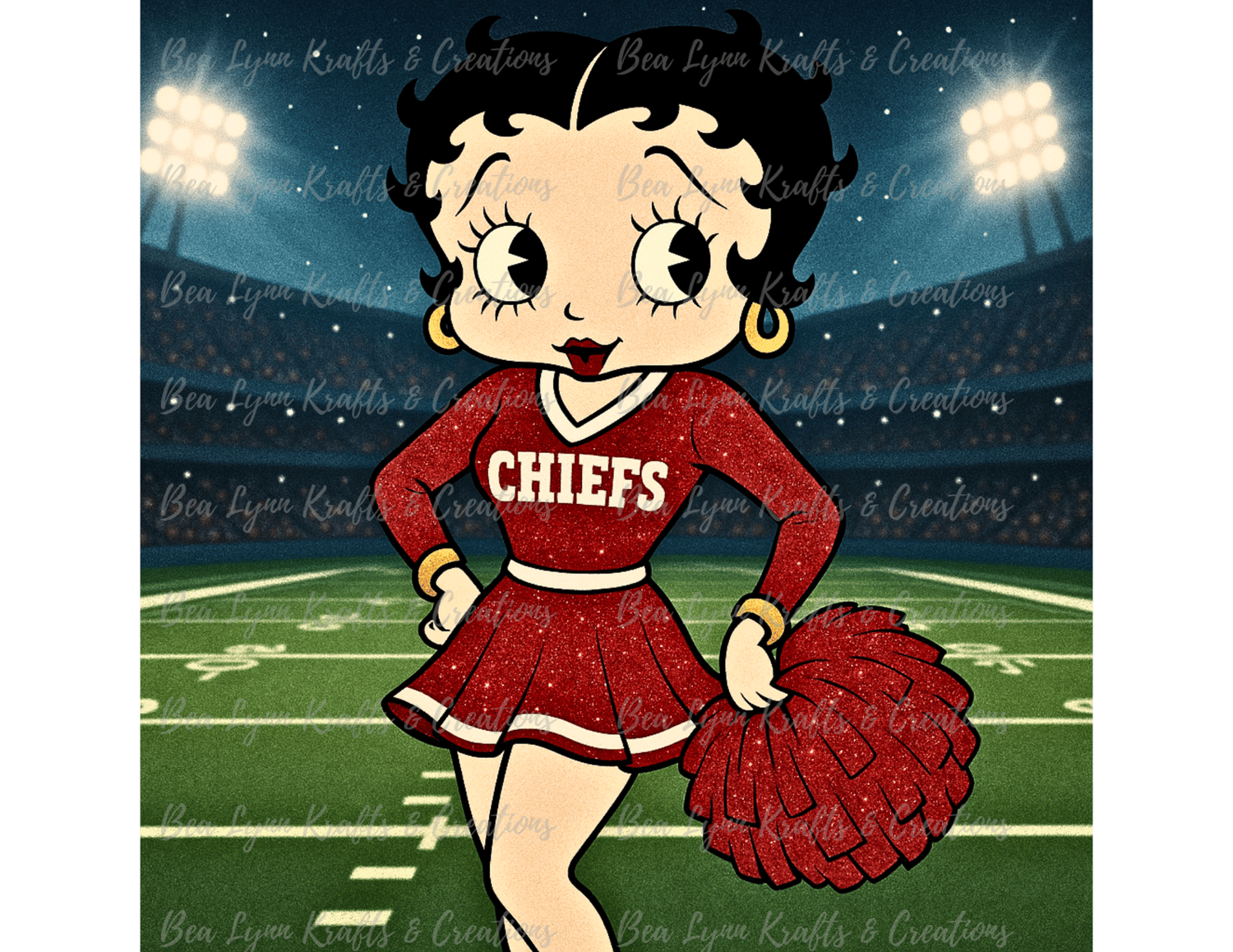Betty Boop Chiefs Cheerleader PNG – Retro Football Fan Art with Sparkle Red Outfit
