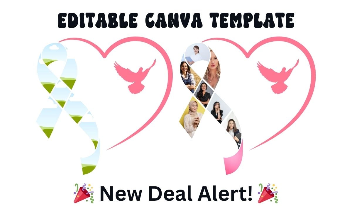 Hope & Healing Canva Photo Frame Template Pink Heart, Dove & Awareness Ribbon Collage