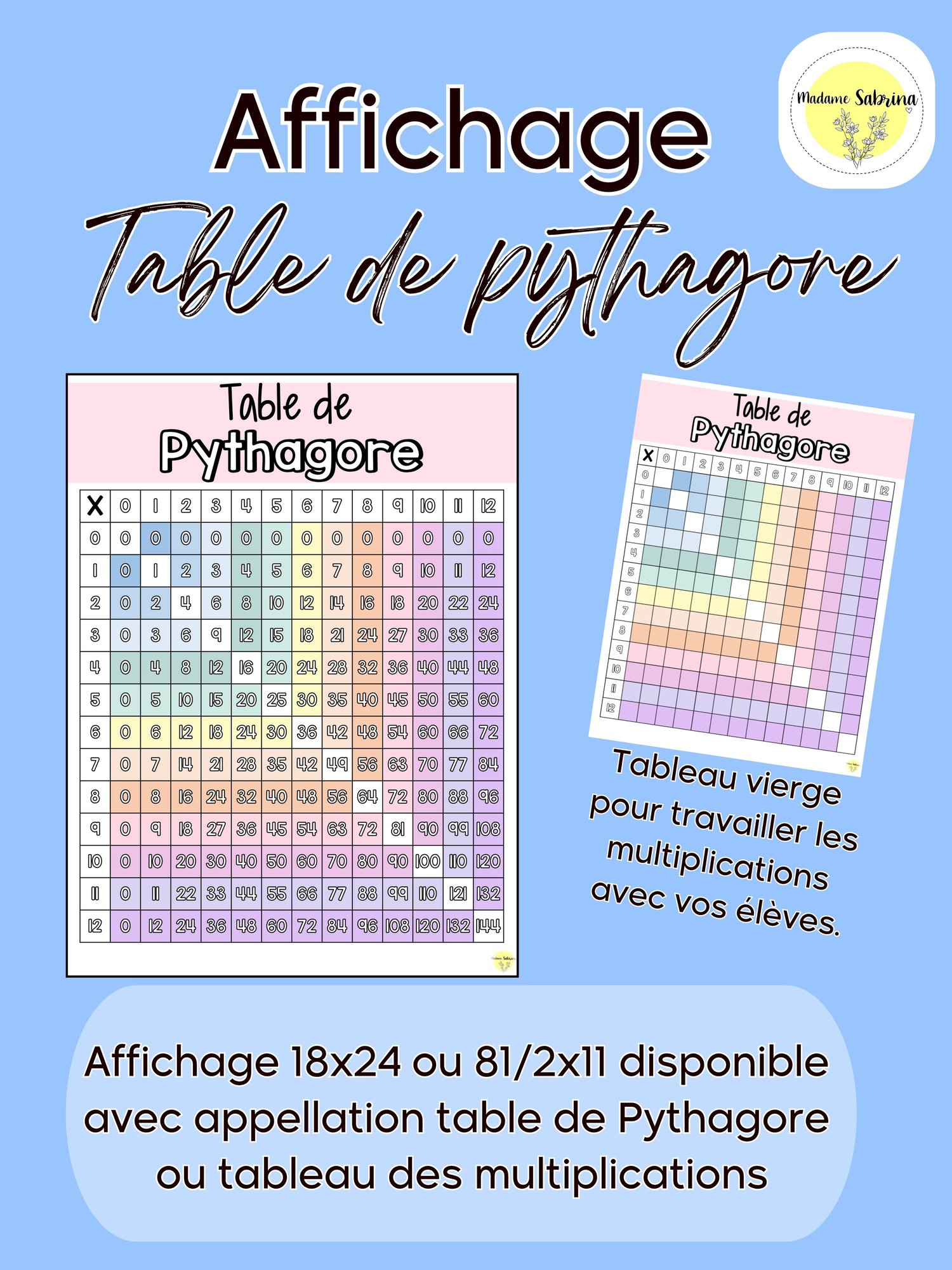 Cet affichage du tableau de Pythagore aussi appelé tableau des multiplications. À vous de choisir et de télécharger la version que vous préférez.