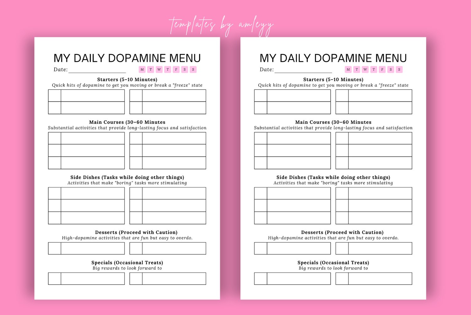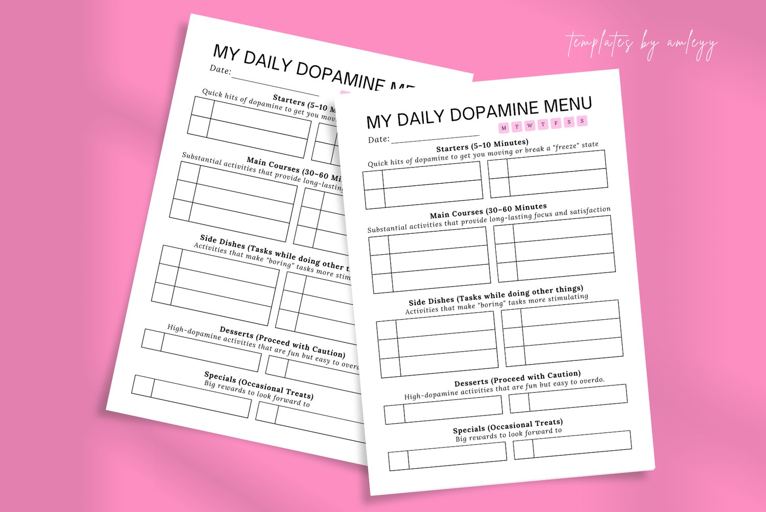 Stop the "Doom Scrolling" and find your focus. Are you tired of feeling stuck in an ADHD "freeze" or losing hours to mindless scrolling? This Dopamine Menu Planner is a powerful tool designed to help you manage executive dysfunction by pre-planning healthy ways to stimulate your brain. Based on the viral "Dopamine Menu" concept, this template categorizes activities into Starters, Mains, Sides, and Desserts so you always know exactly what to do when your energy dips.