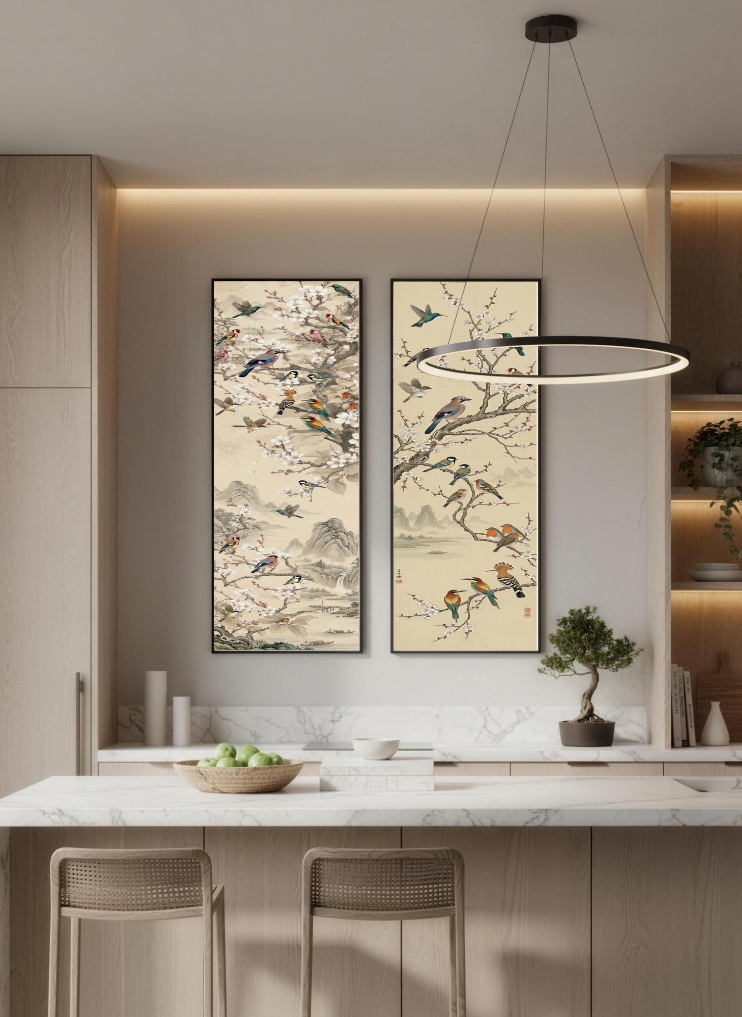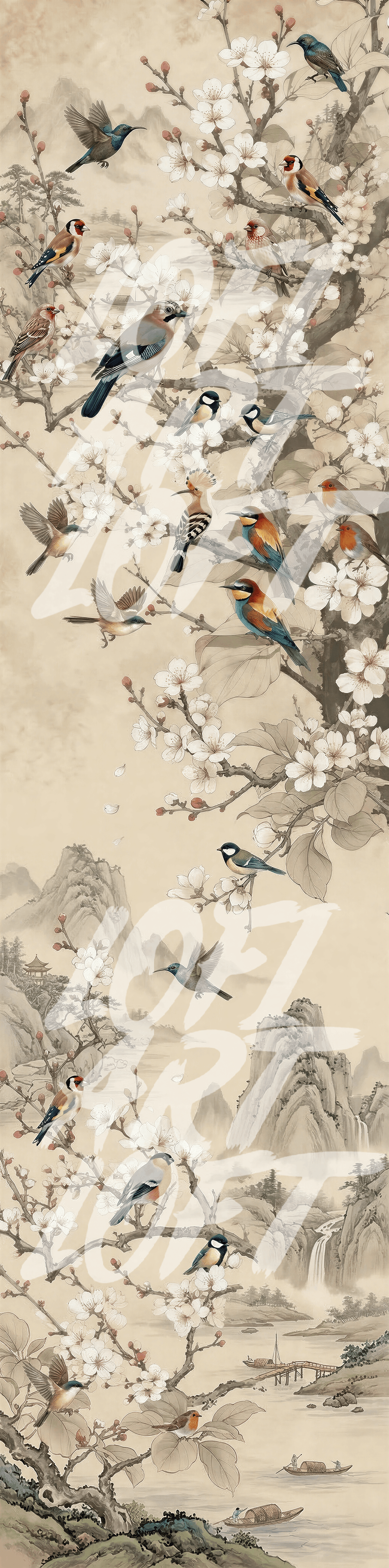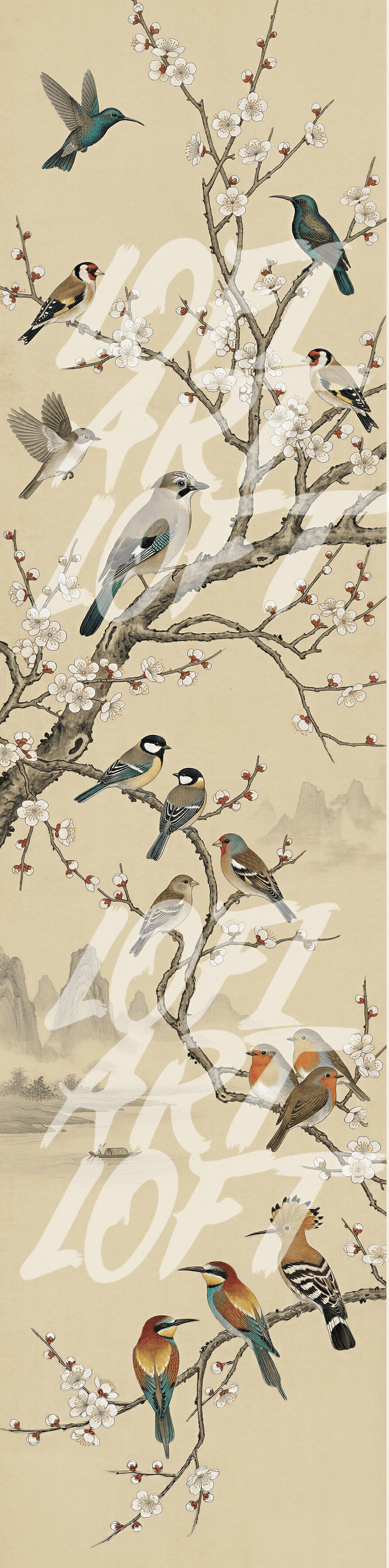 Song Birds Sakura - SIGNATURE LIMITED COLLECTION -Vertical Japanese Vintage Ink Series - UHQ Digital Lofi Anime Art Print | #47